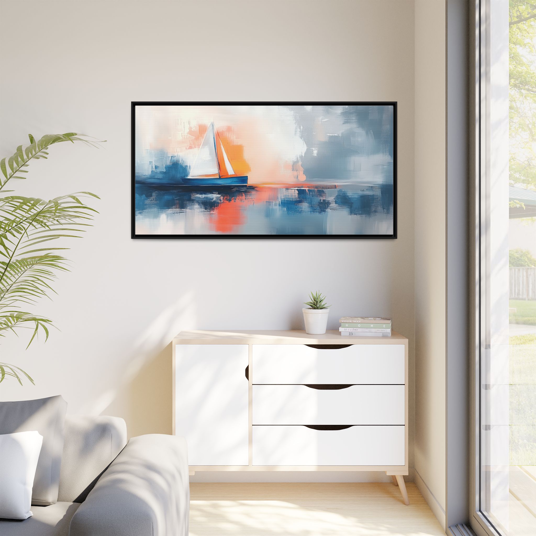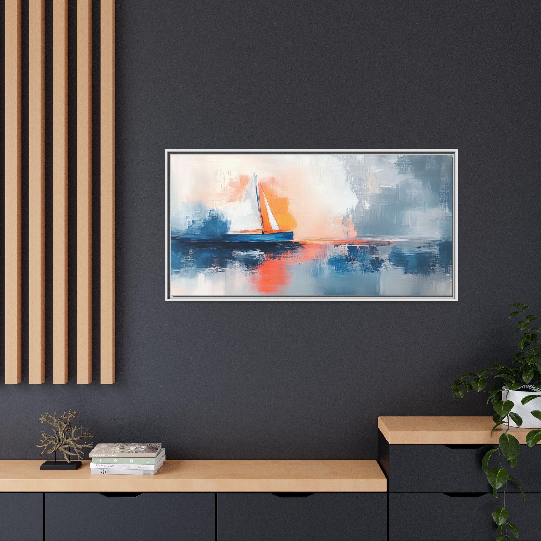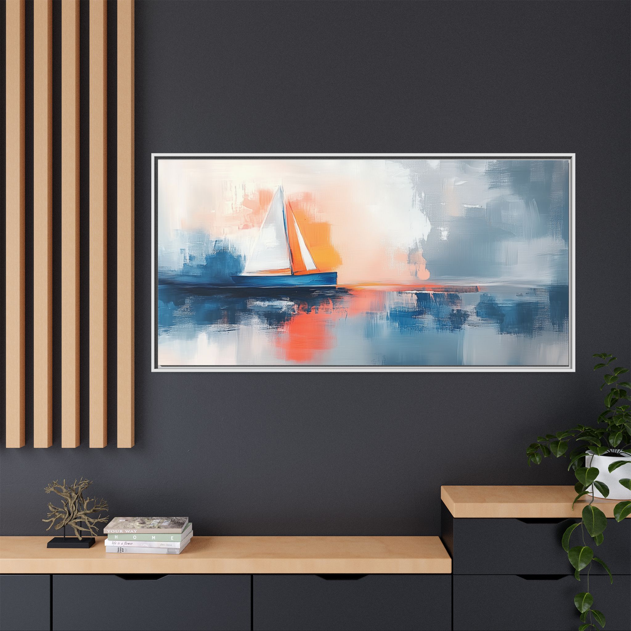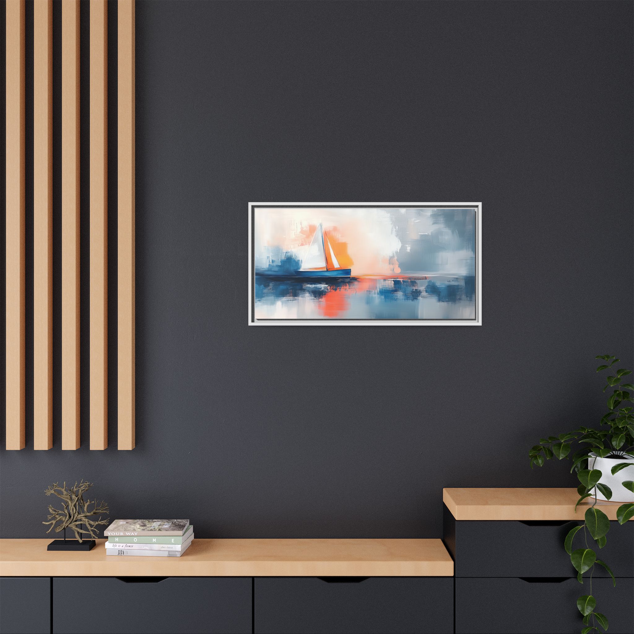 Bring the calming and serene vibes of an abstract boat oil painting into your space with this matte canvas print. Perfect for art lovers and those looking to add a touch of artistic flair to their home decor. Ideal for gifting on birthdays, anniversaries, or housewarmings.