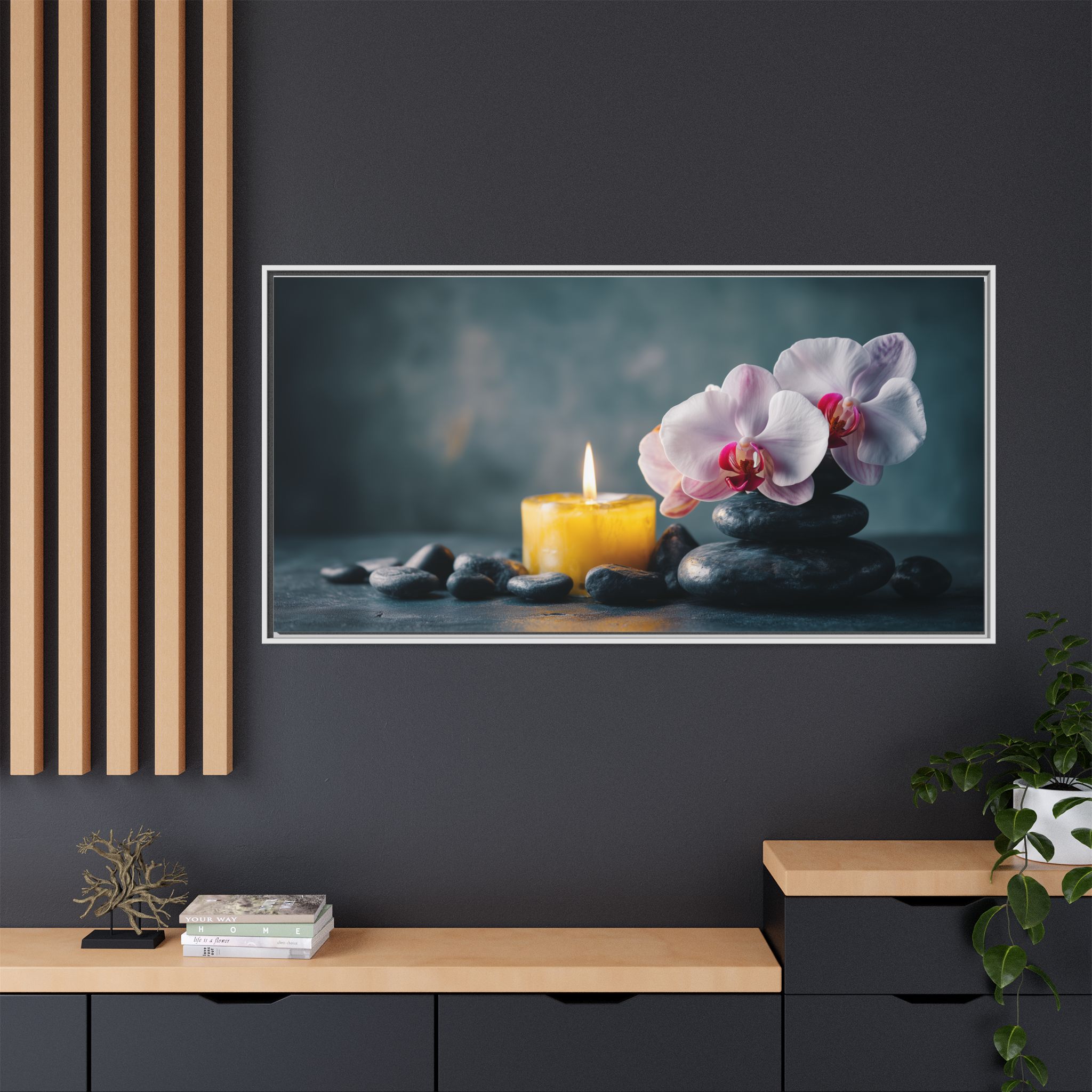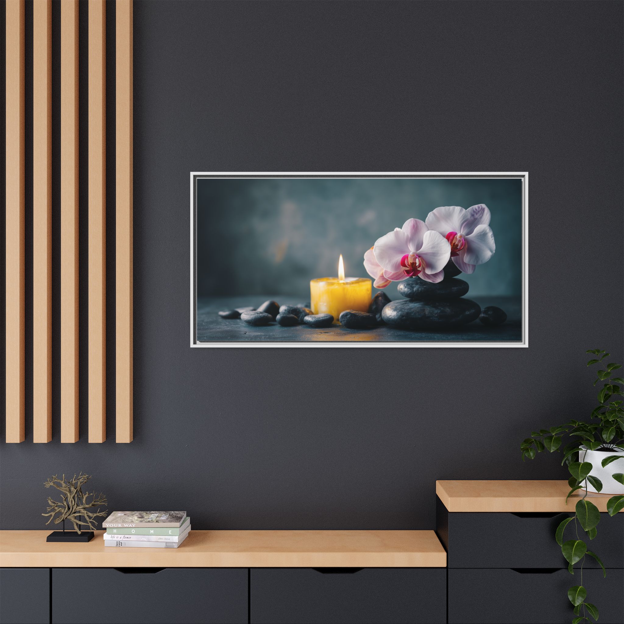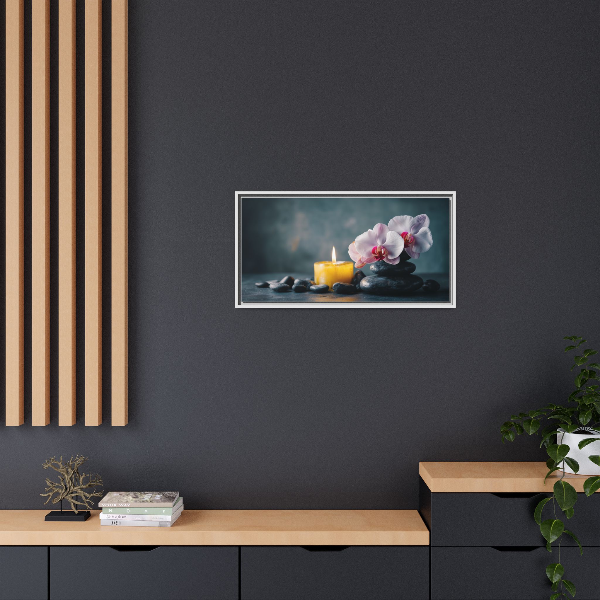 A stunning matte canvas print featuring a beautiful design of candle and orchid, giving a calming and elegant vibe. Perfect for home decor enthusiasts and those looking to add a touch of serenity to their living space. Ideal for gifting on occasions like birthdays, anniversaries, or housewarming parties.