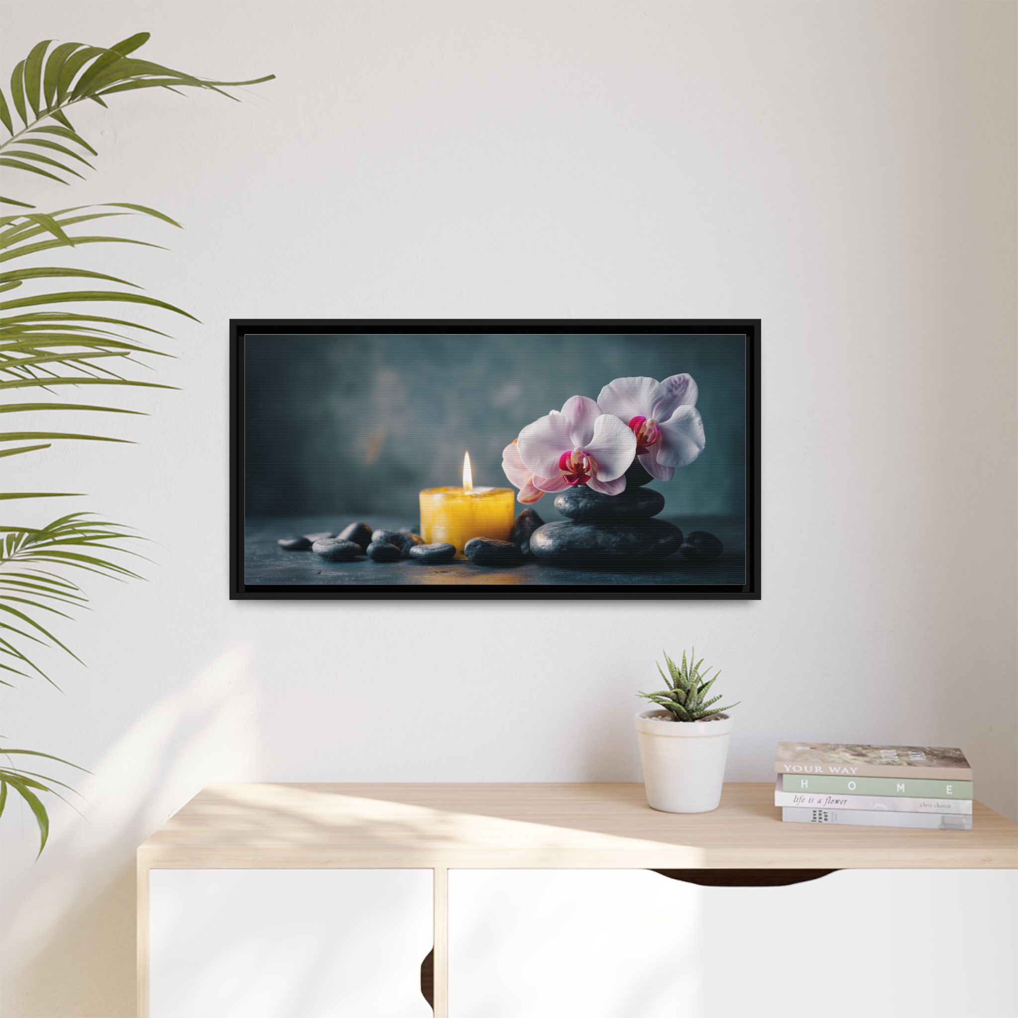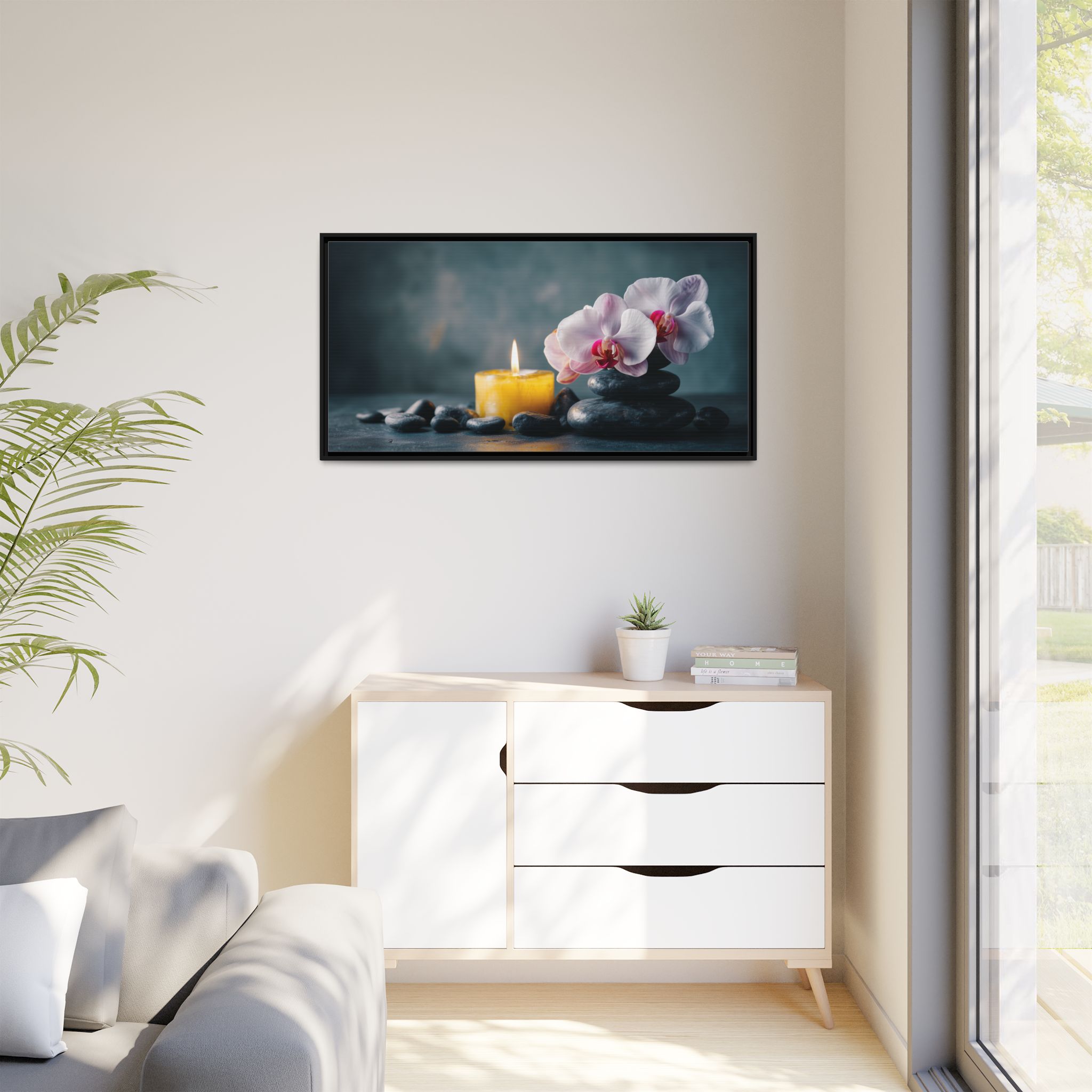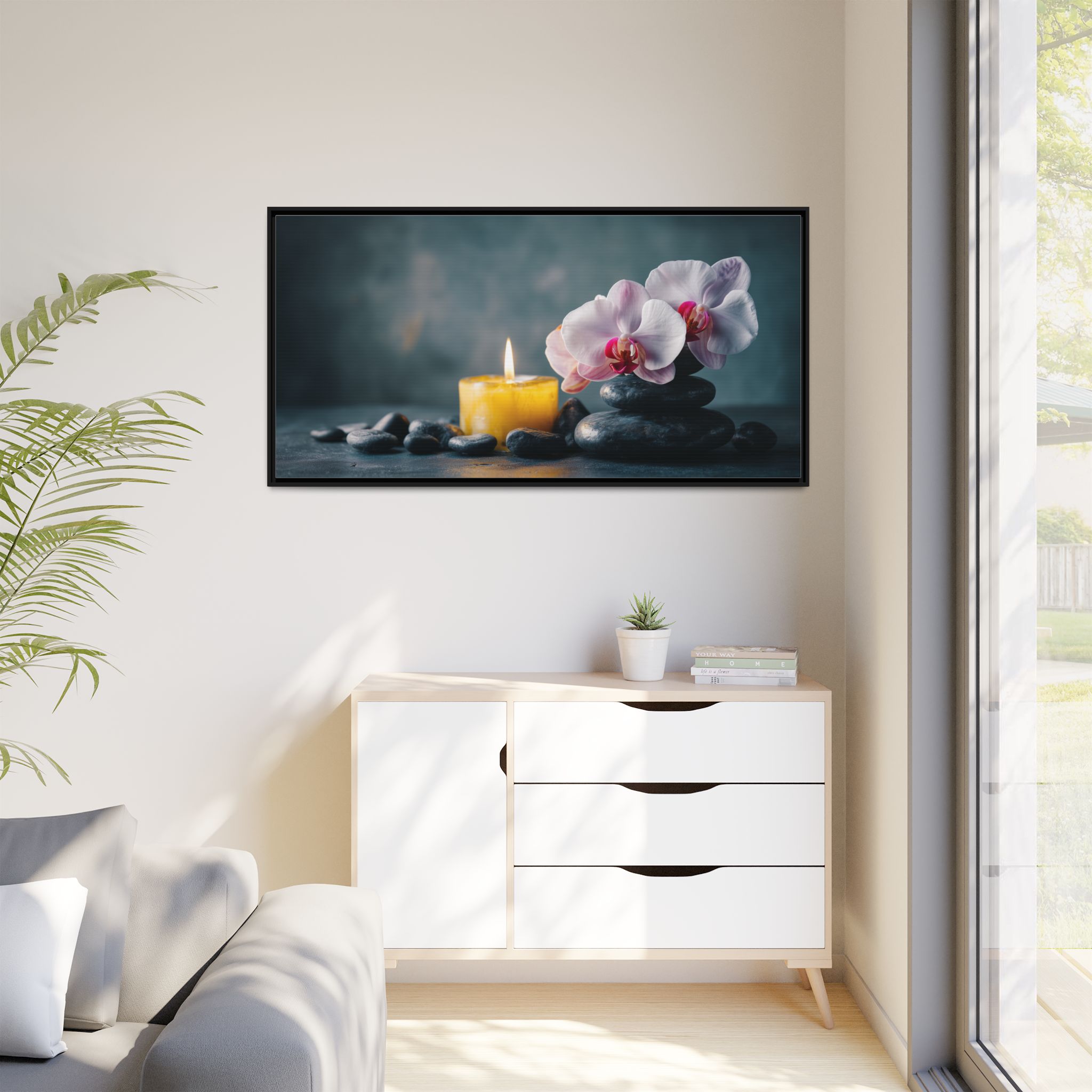 A stunning matte canvas print featuring a beautiful design of candle and orchid, giving a calming and elegant vibe. Perfect for home decor enthusiasts and those looking to add a touch of serenity to their living space. Ideal for gifting on occasions like birthdays, anniversaries, or housewarming parties.