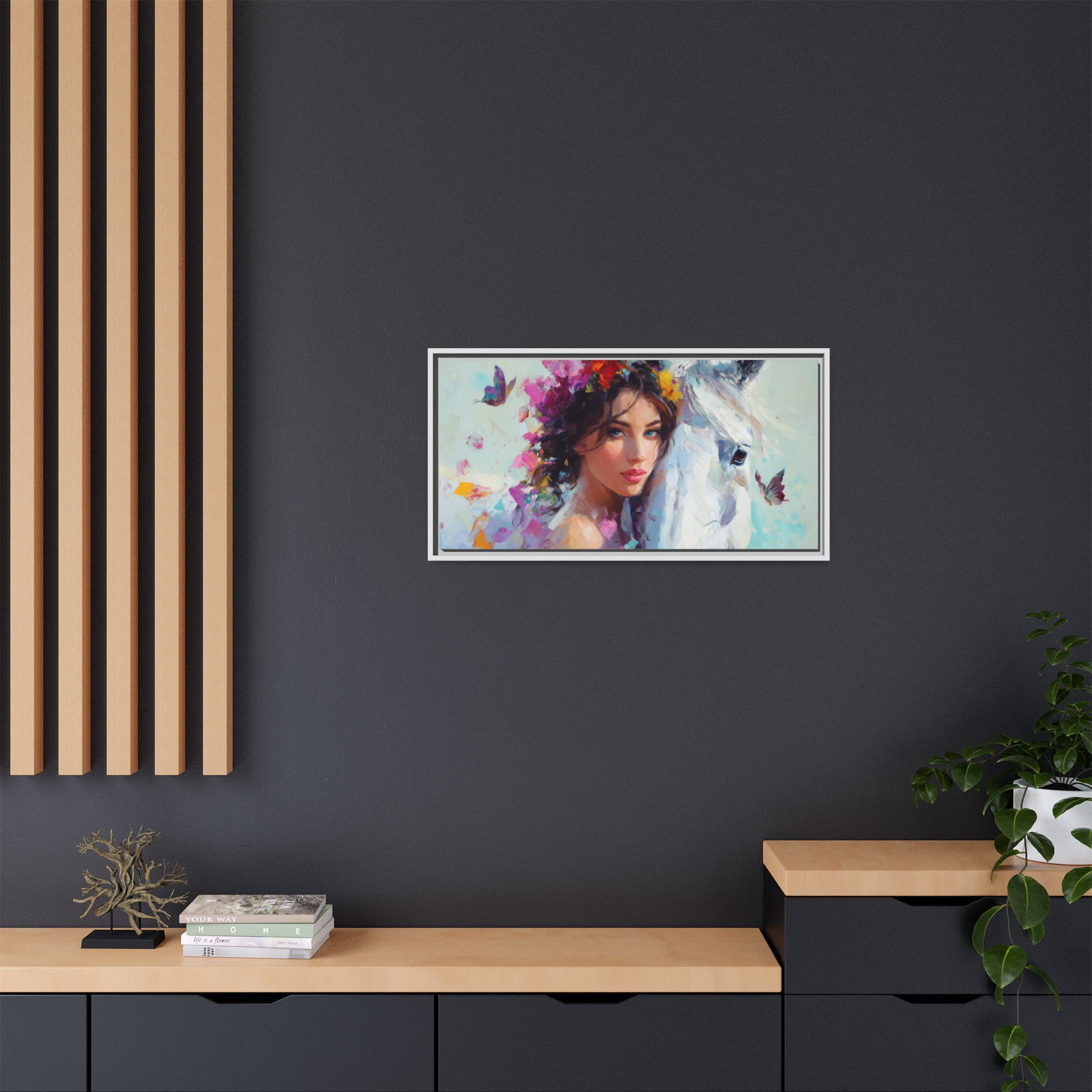 A canvas print featuring a design of cold beauty and horse, evoking a serene and rustic vibe. Perfect for horse lovers and nature enthusiasts, this artwork adds a touch of elegance to any space. Ideal for gifting during holidays, birthdays, or special occasions.