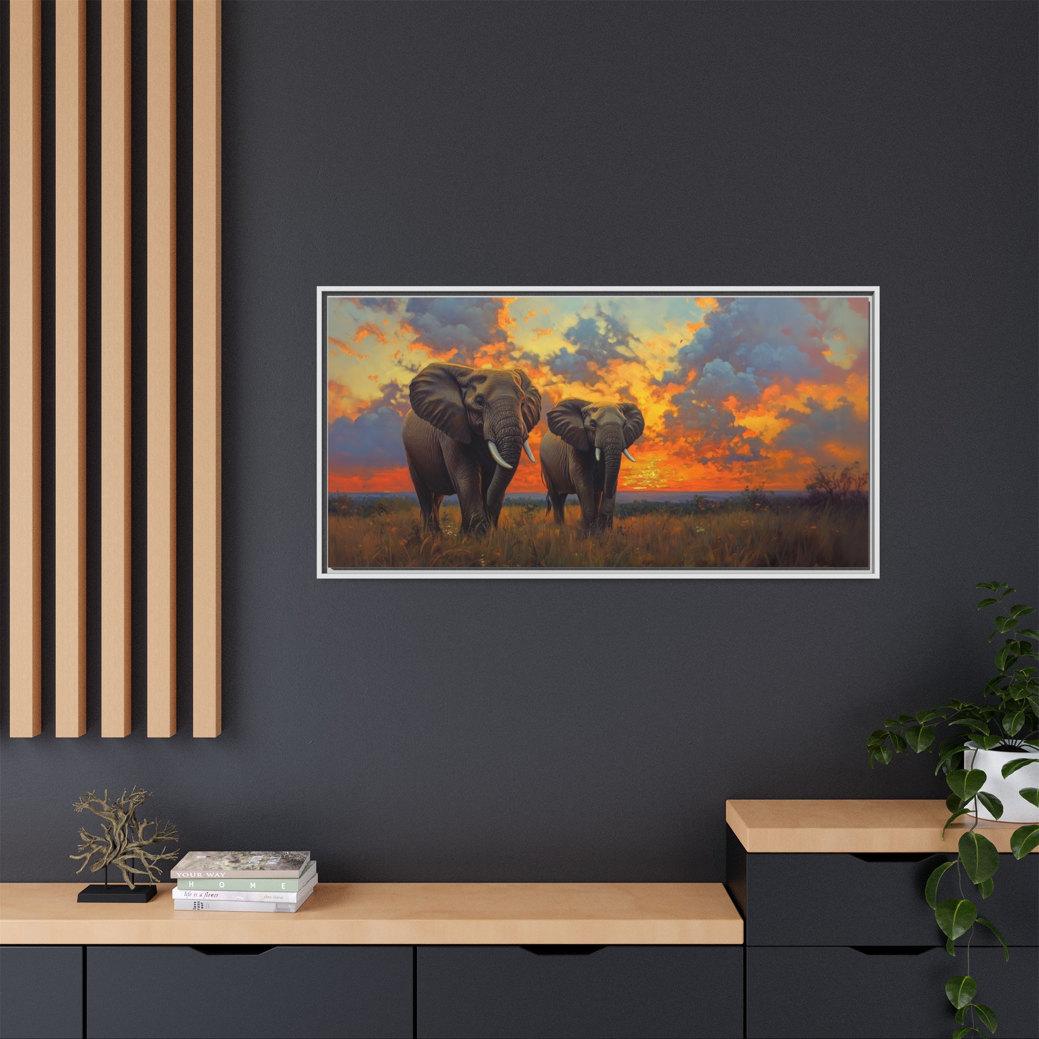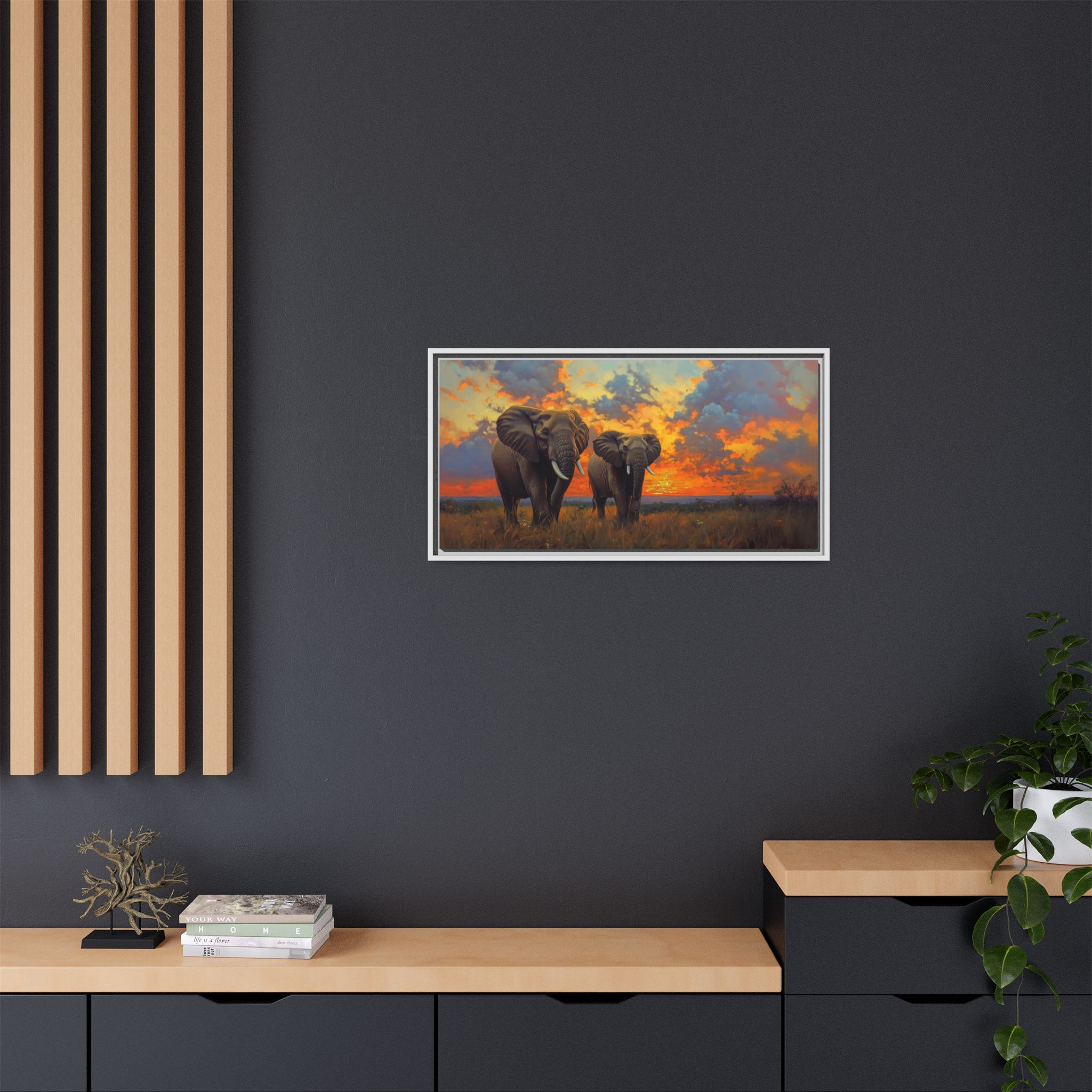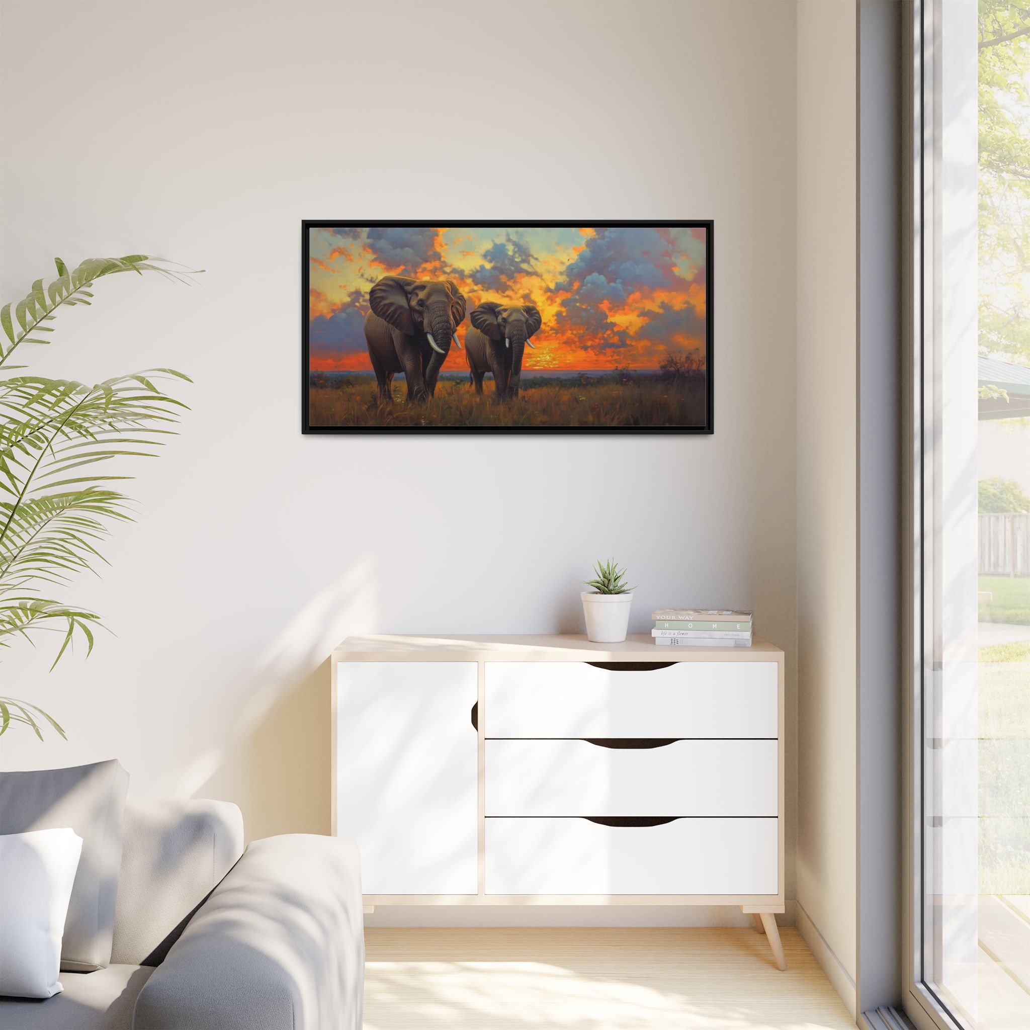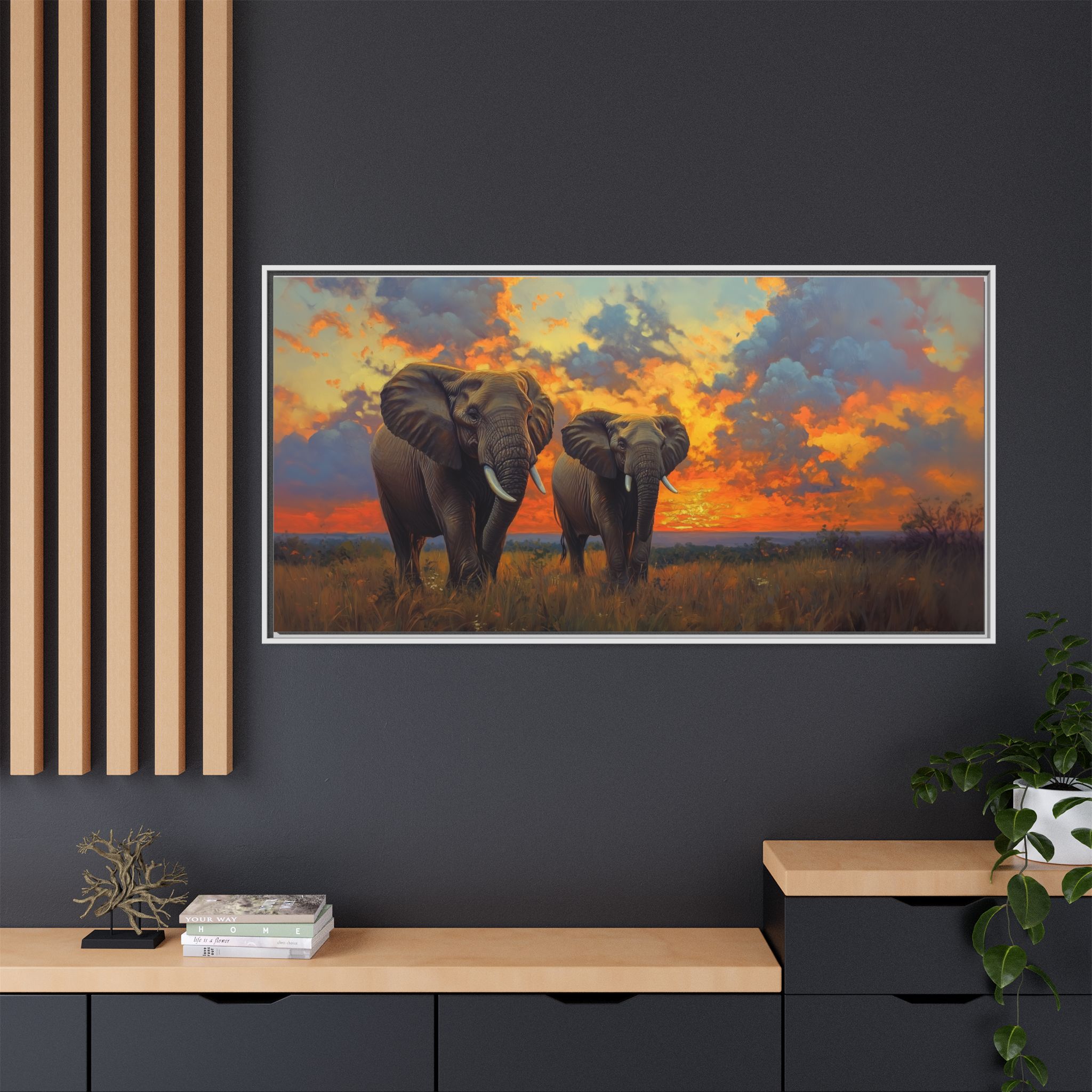 This canvas print features a serene scene of a pair of elephants in the savannah at sunset, creating a peaceful and nature-inspired vibe. Perfect for nature lovers and those seeking a calming atmosphere in their space, this canvas print is ideal for decorating living rooms, bedrooms, or offices. It makes a great gift for animal lovers, conservationists, and those who appreciate wildlife art. Suitable for birthdays, housewarmings, or any special occasion.