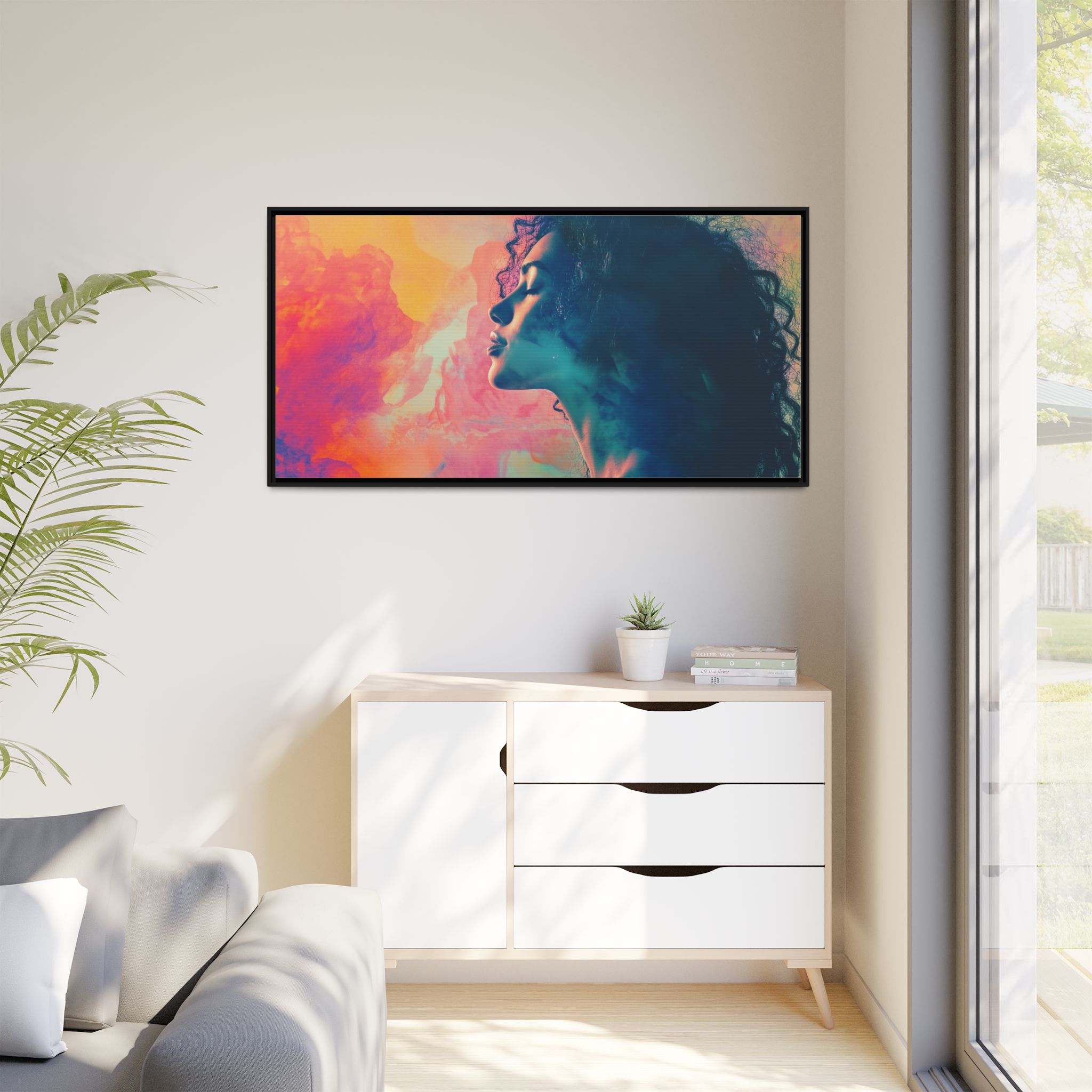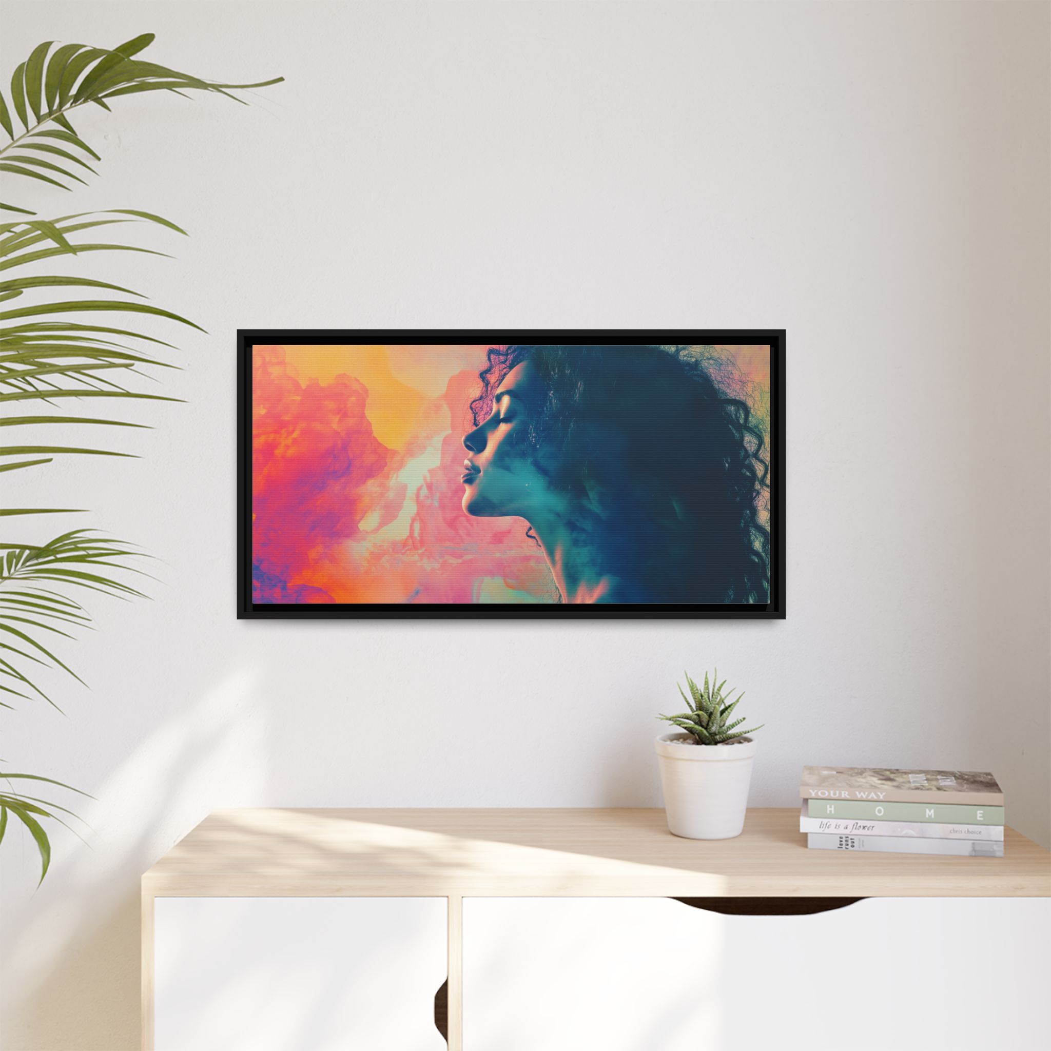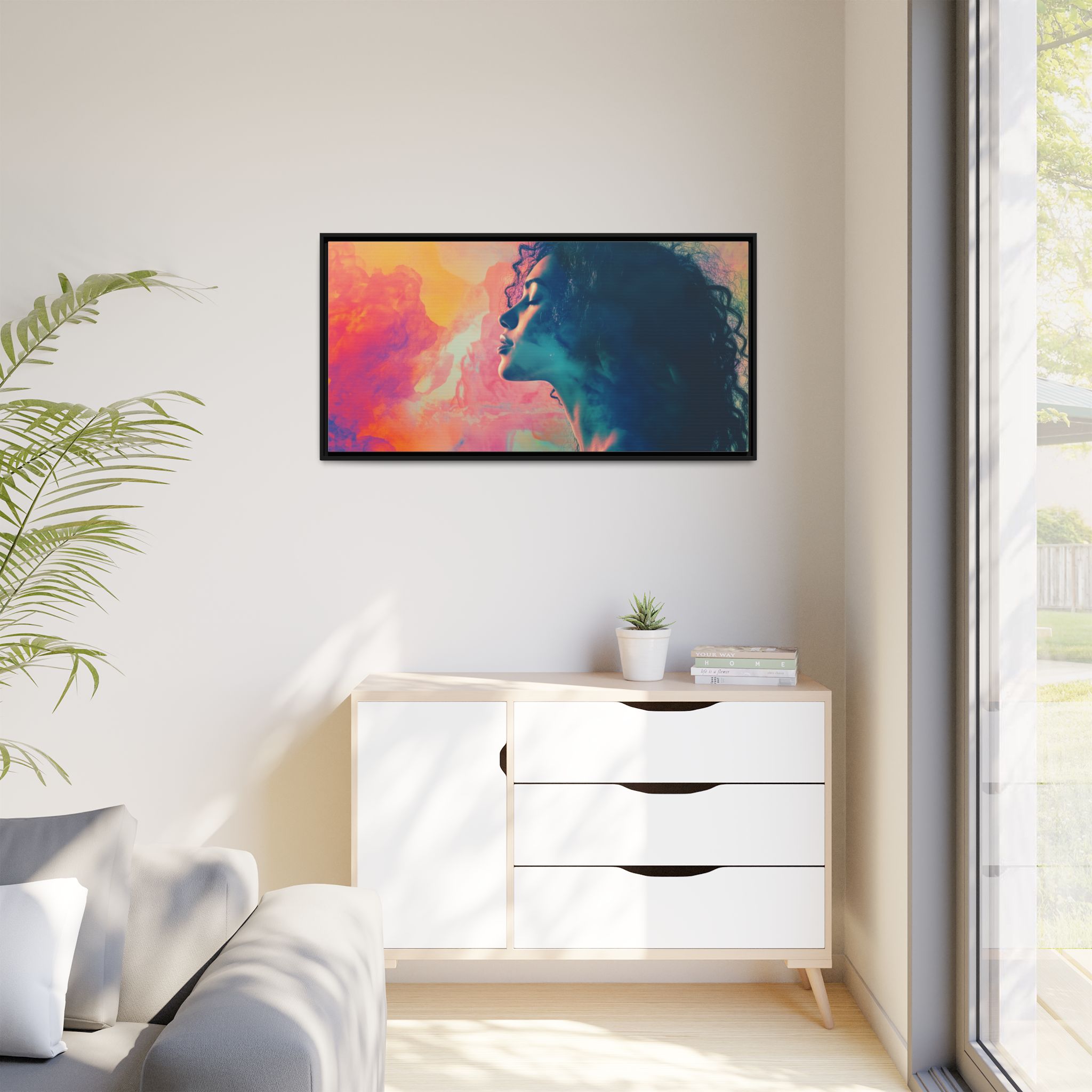 A Matte Canvas, Framed Canvas Print featuring the design 'Enjoying The Moment'. Perfect for adding a touch of positivity and relaxation to any room. Ideal for those looking to create a tranquil atmosphere in their home or workspace. Great for gifting on birthdays, housewarmings, or as a holiday present.