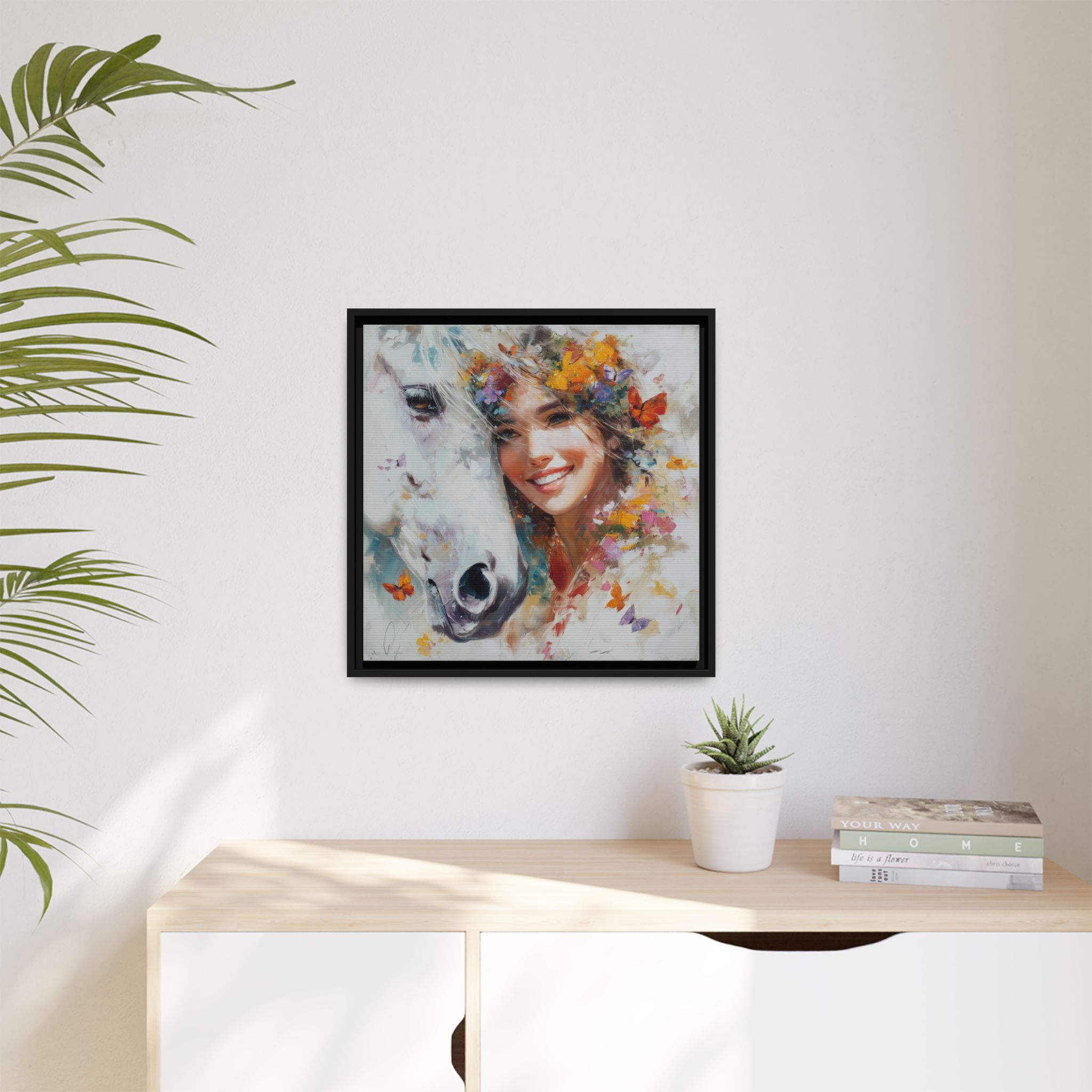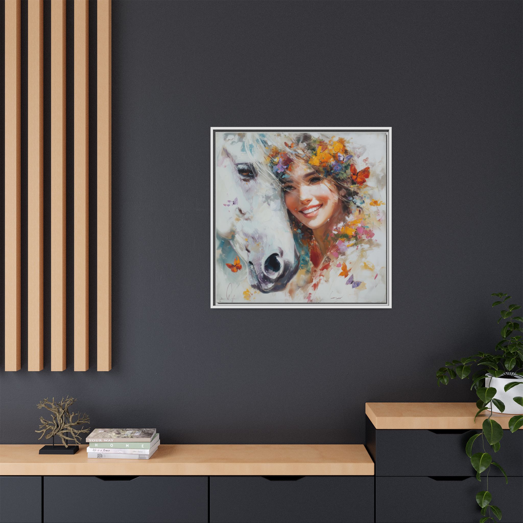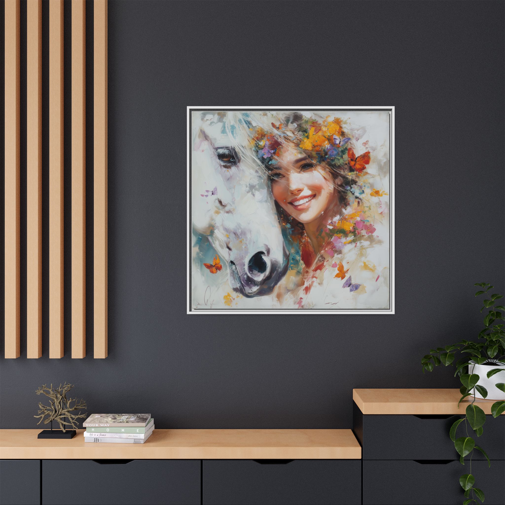 Beautiful canvas featuring an oil painting of a happy girl and her white horse, perfect for adding a touch of joy and nature to any room. Ideal for art lovers, horse enthusiasts, and those who appreciate unique, vibrant artwork. Great for gift giving on birthdays, holidays, or as a special treat for yourself.