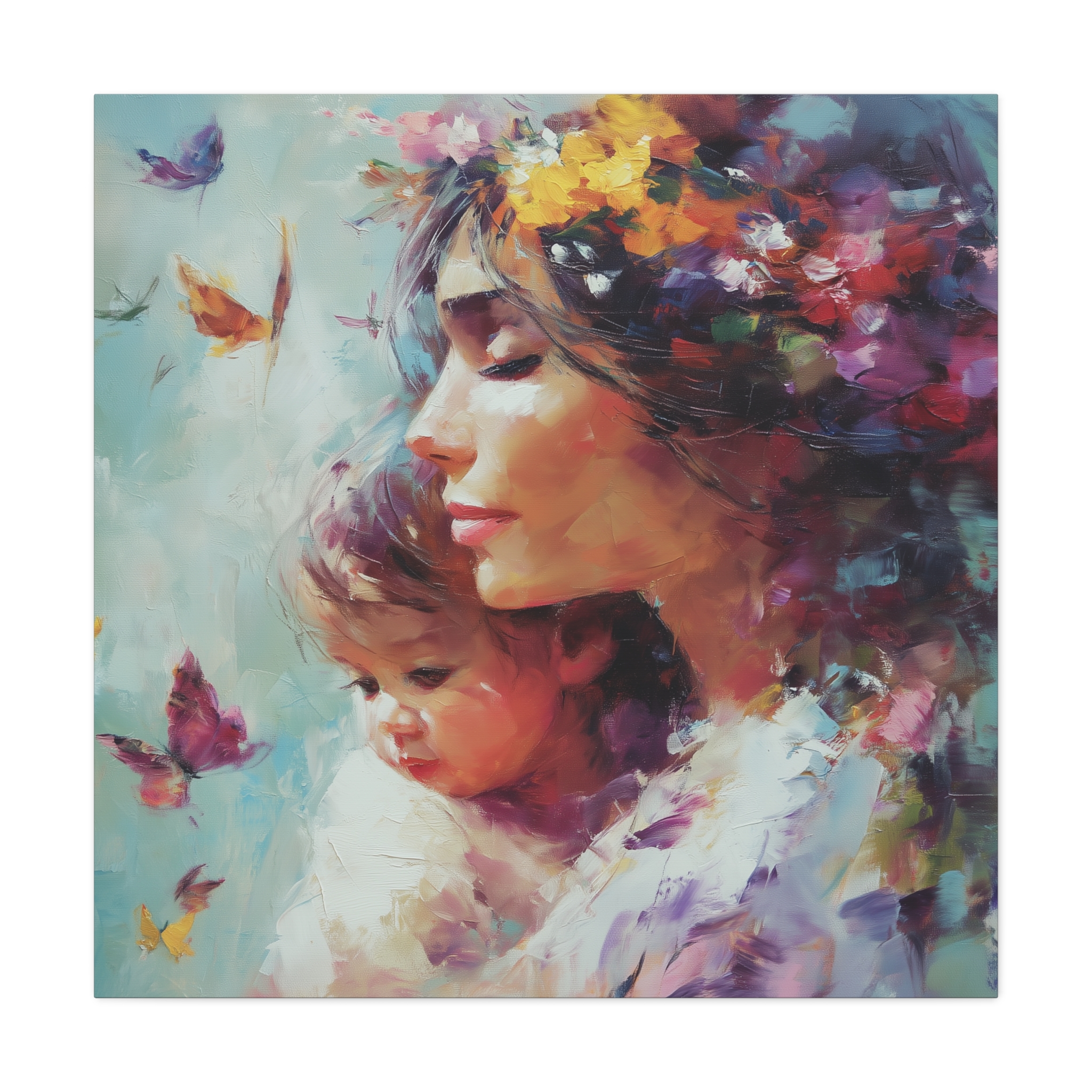 A beautiful canvas print featuring a heartwarming design of a mother and child, perfect for adding a touch of love and warmth to any room. Ideal for mothers, parents, or anyone who appreciates sentimental artwork. Great for Mother's Day, birthdays, or as a thoughtful gift for new parents.