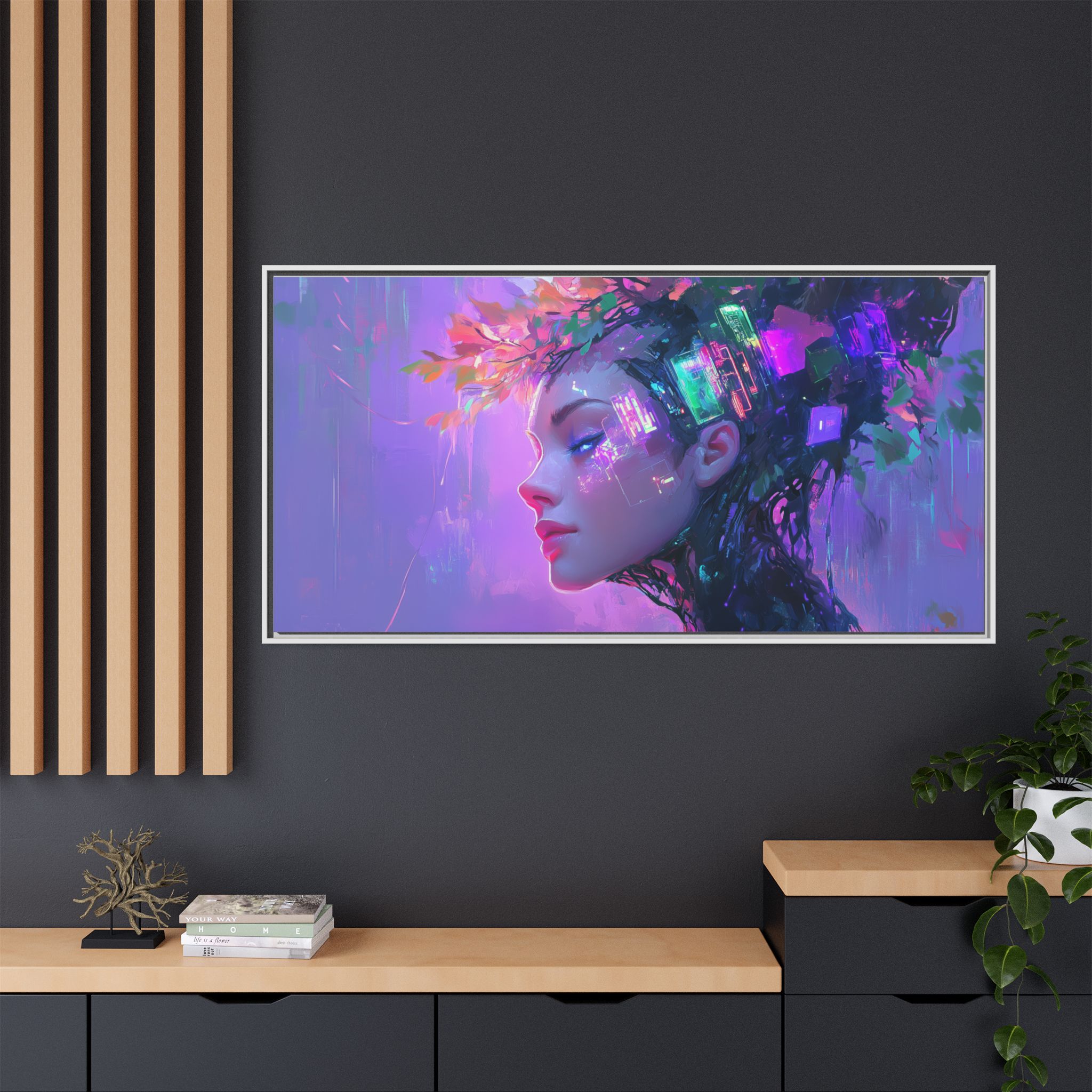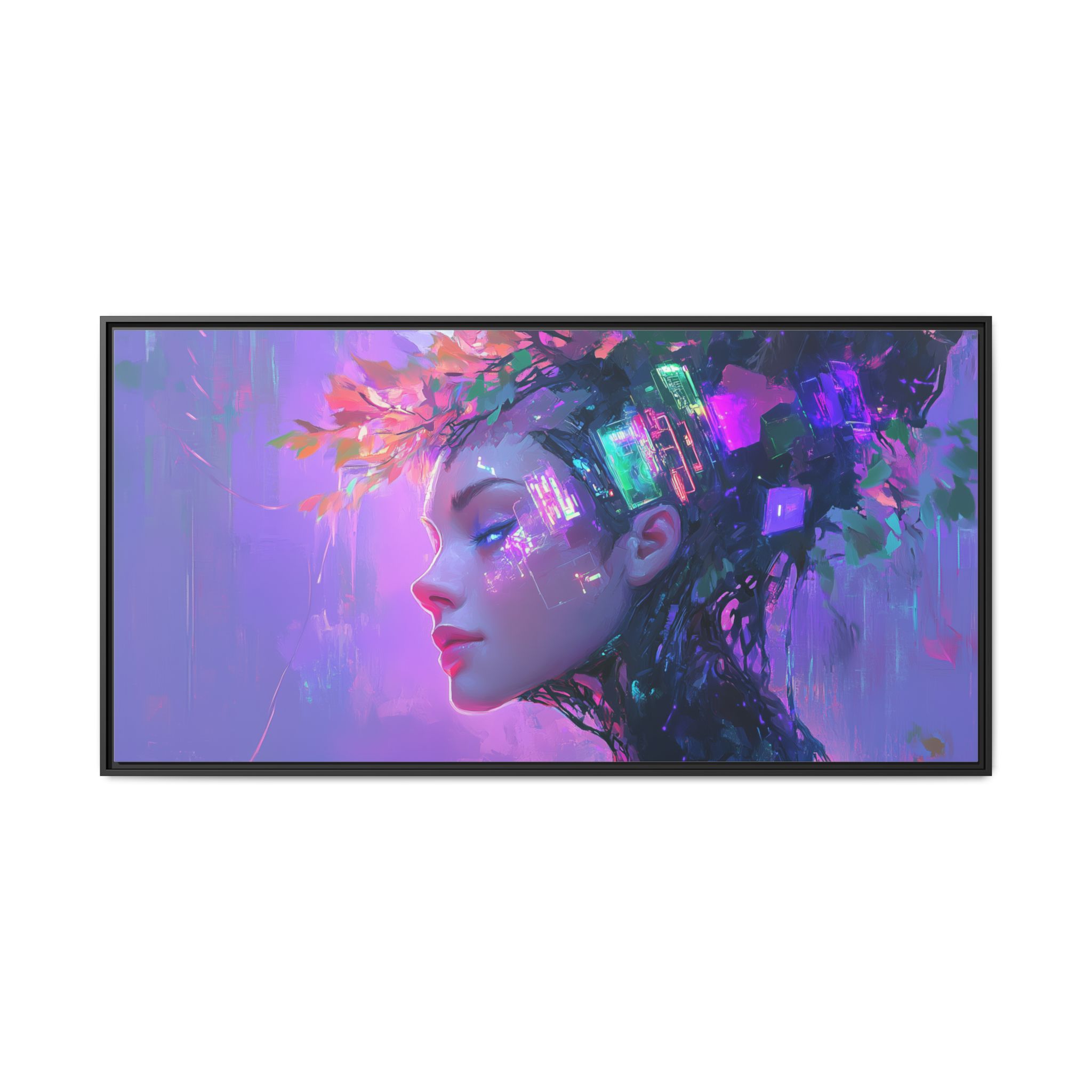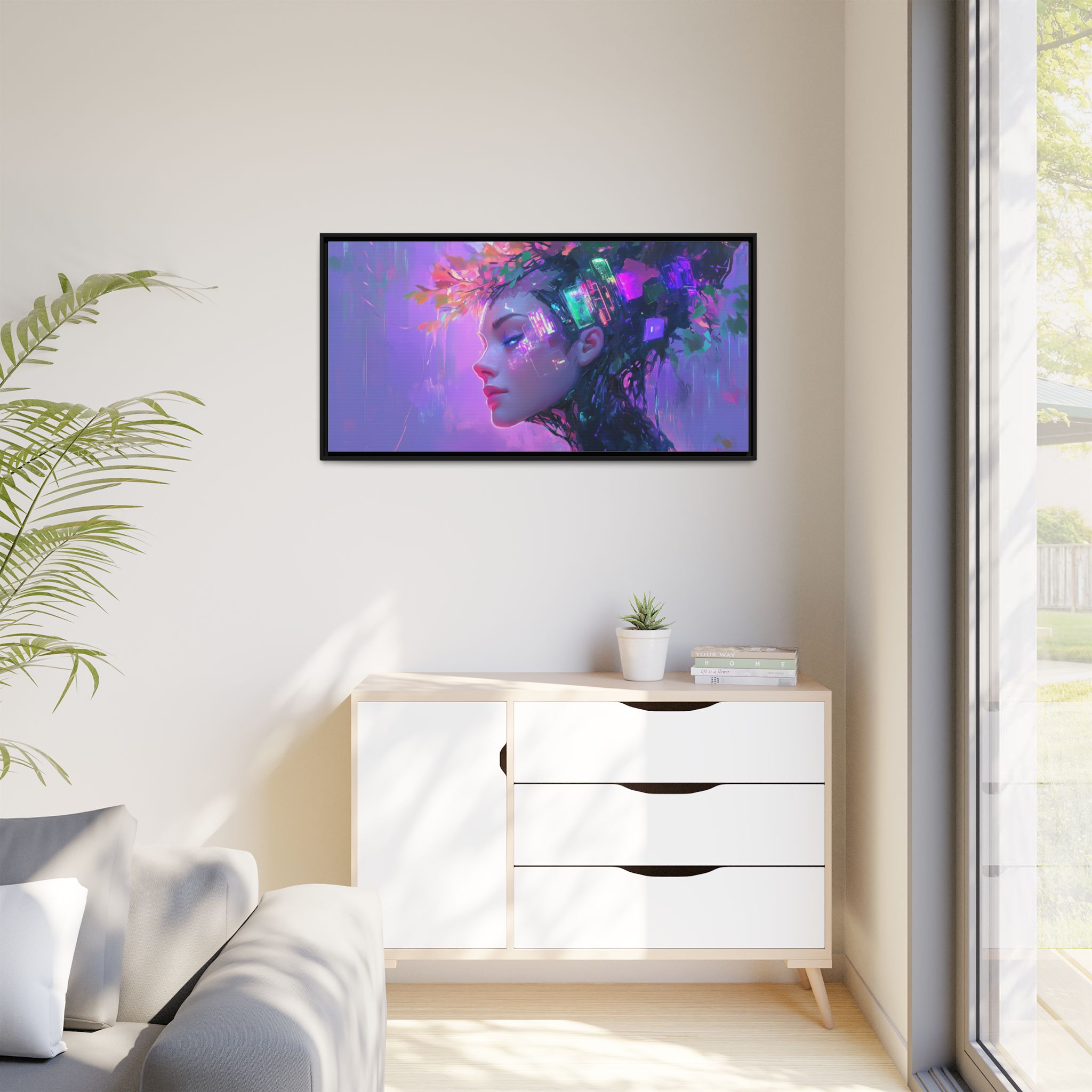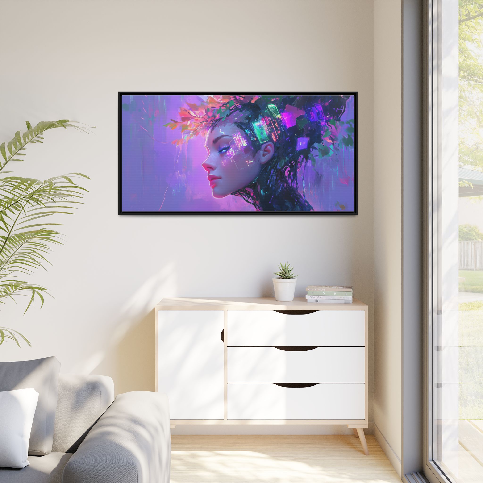 A nice purple cyborg design on a matte canvas, framed with multi-color options. This canvas print offers vibrant colors and a unique coating for the highest quality images, perfect for those looking to add a pop of color to their space. Ideal for art lovers and those who appreciate unique and modern decor. Great for decorating homes, offices, or gifting on birthdays, holidays, or special occasions.