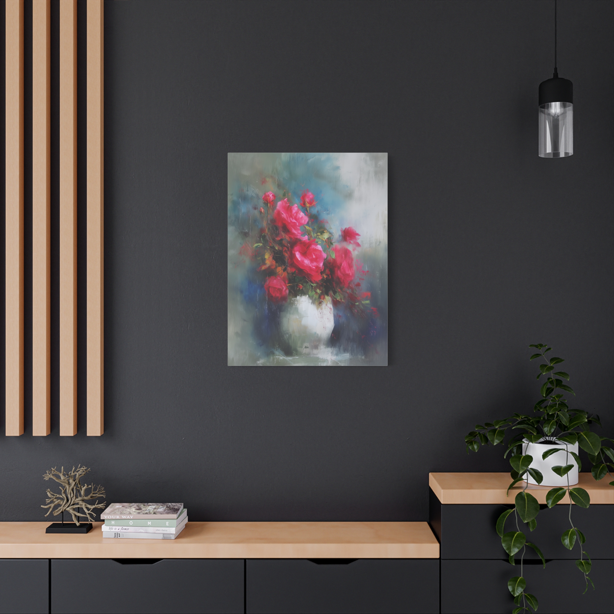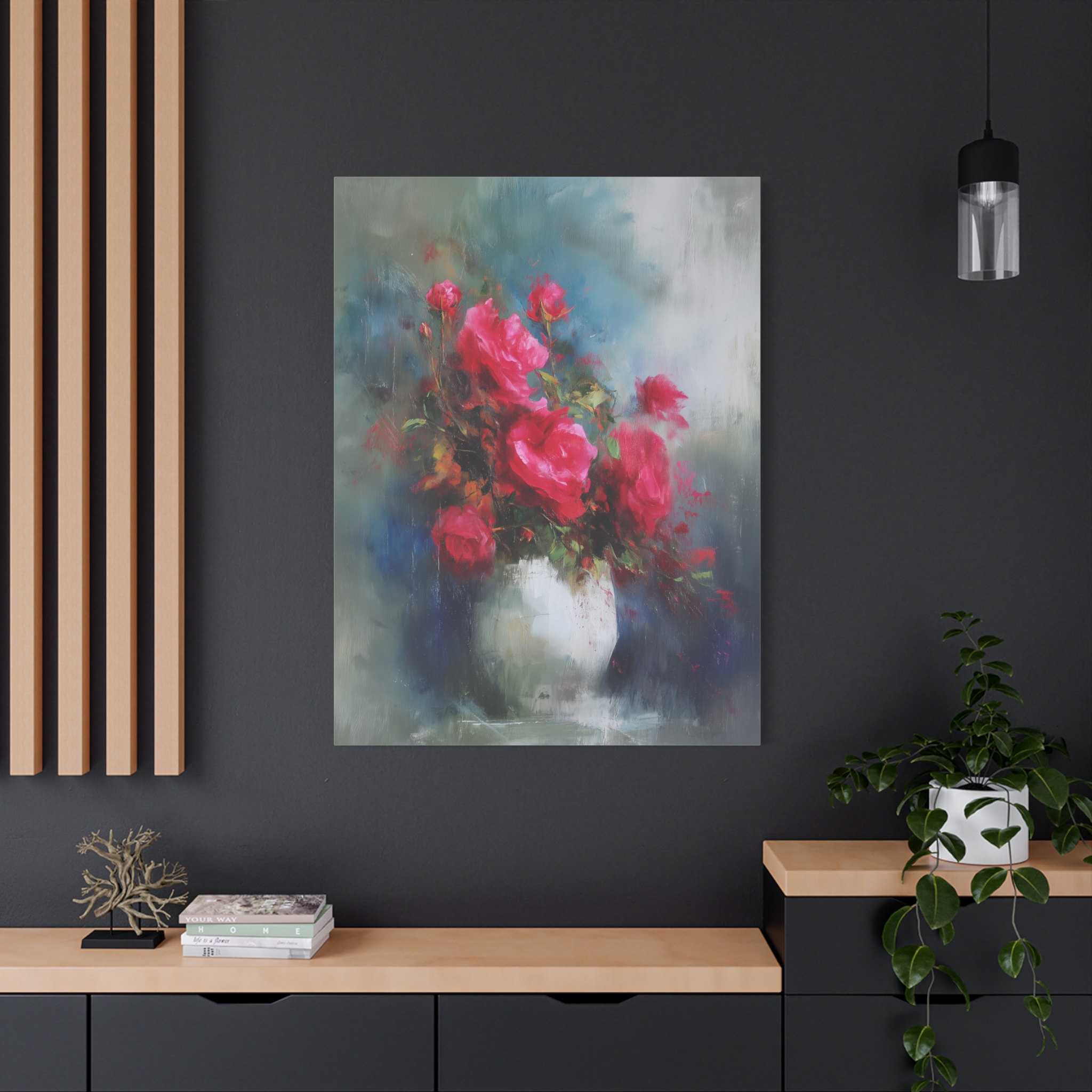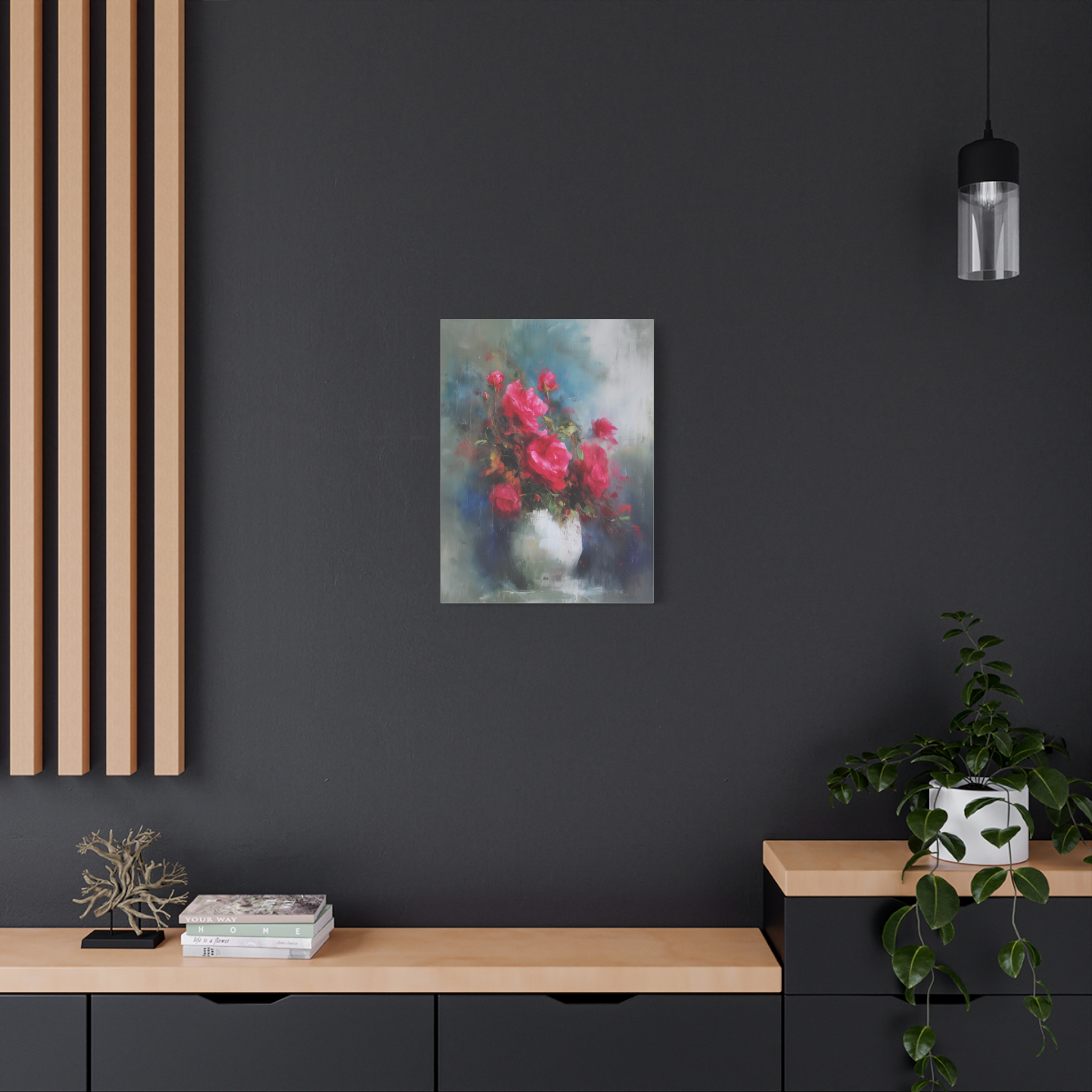 Elegant and romantic canvas print featuring red roses, perfect for adding a touch of sophistication to any room. Ideal for those who appreciate fine art and classic beauty. Great for decorating during Valentine's Day, anniversaries, or romantic occasions.