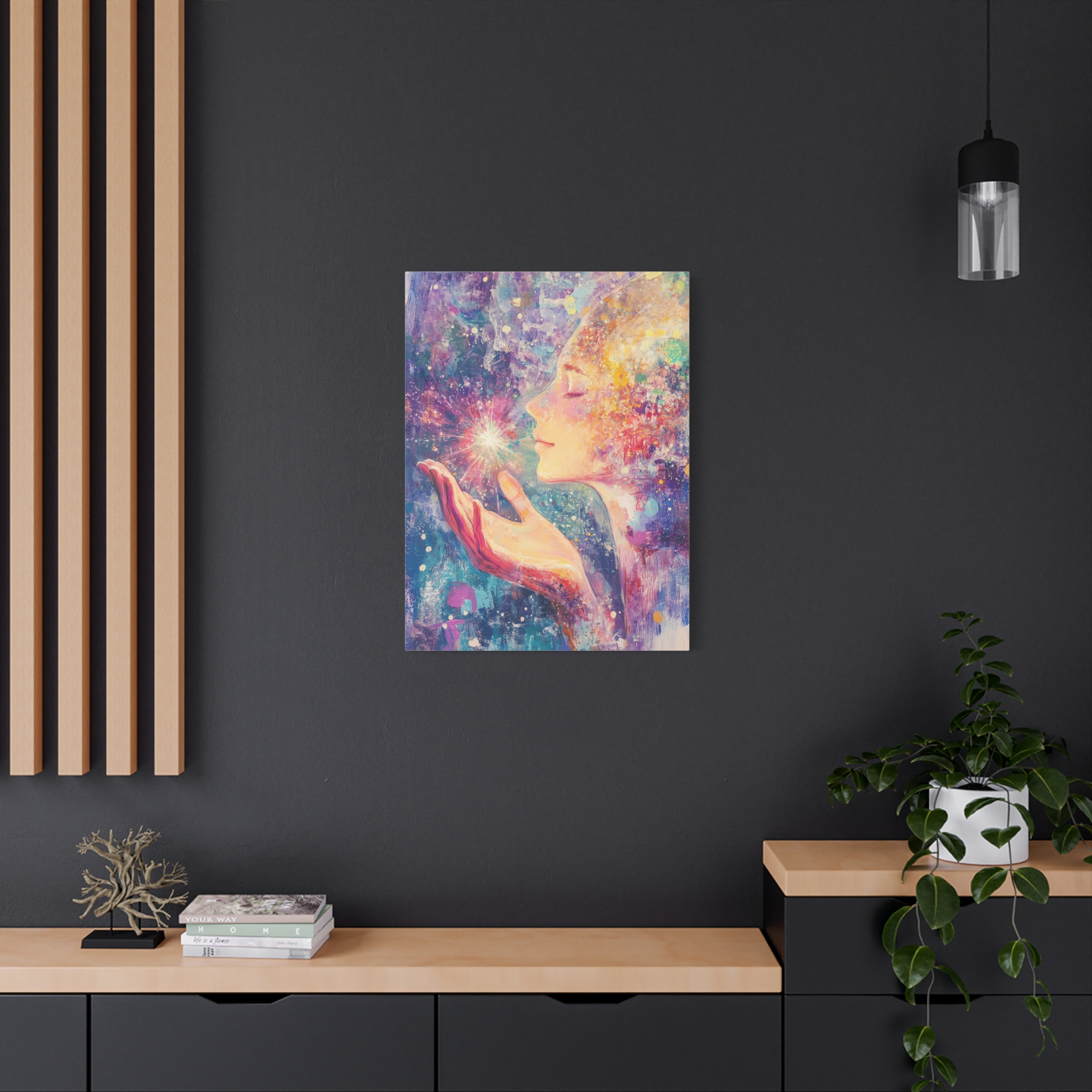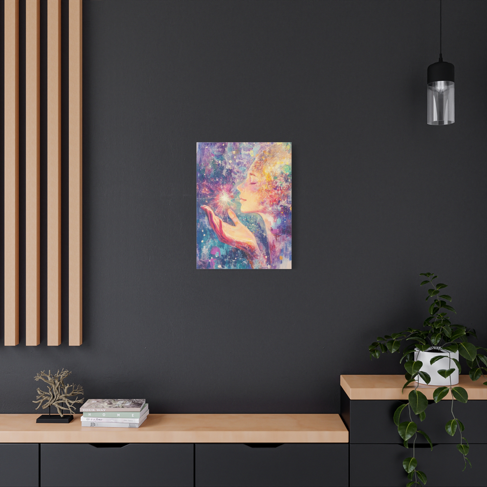 A calming and spiritually uplifting canvas print designed for reiki healing enthusiasts. Perfect for creating a peaceful atmosphere in any room and enhancing a sense of tranquility. Ideal for those who practice reiki or meditation. Relevant for home decor, spiritual spaces, and wellness areas.
