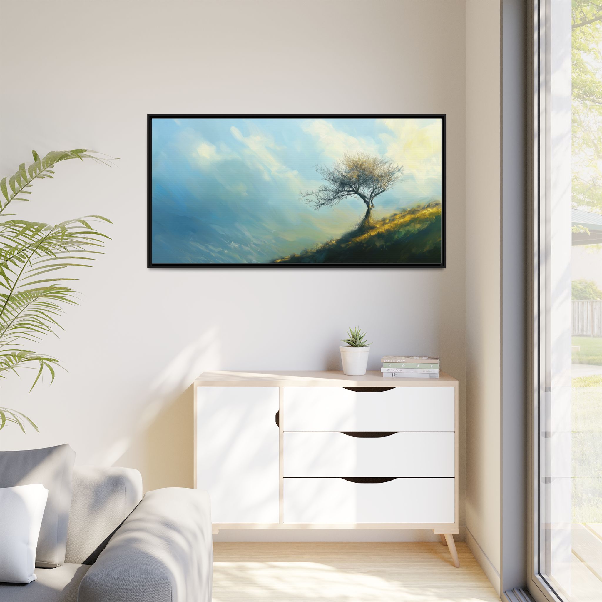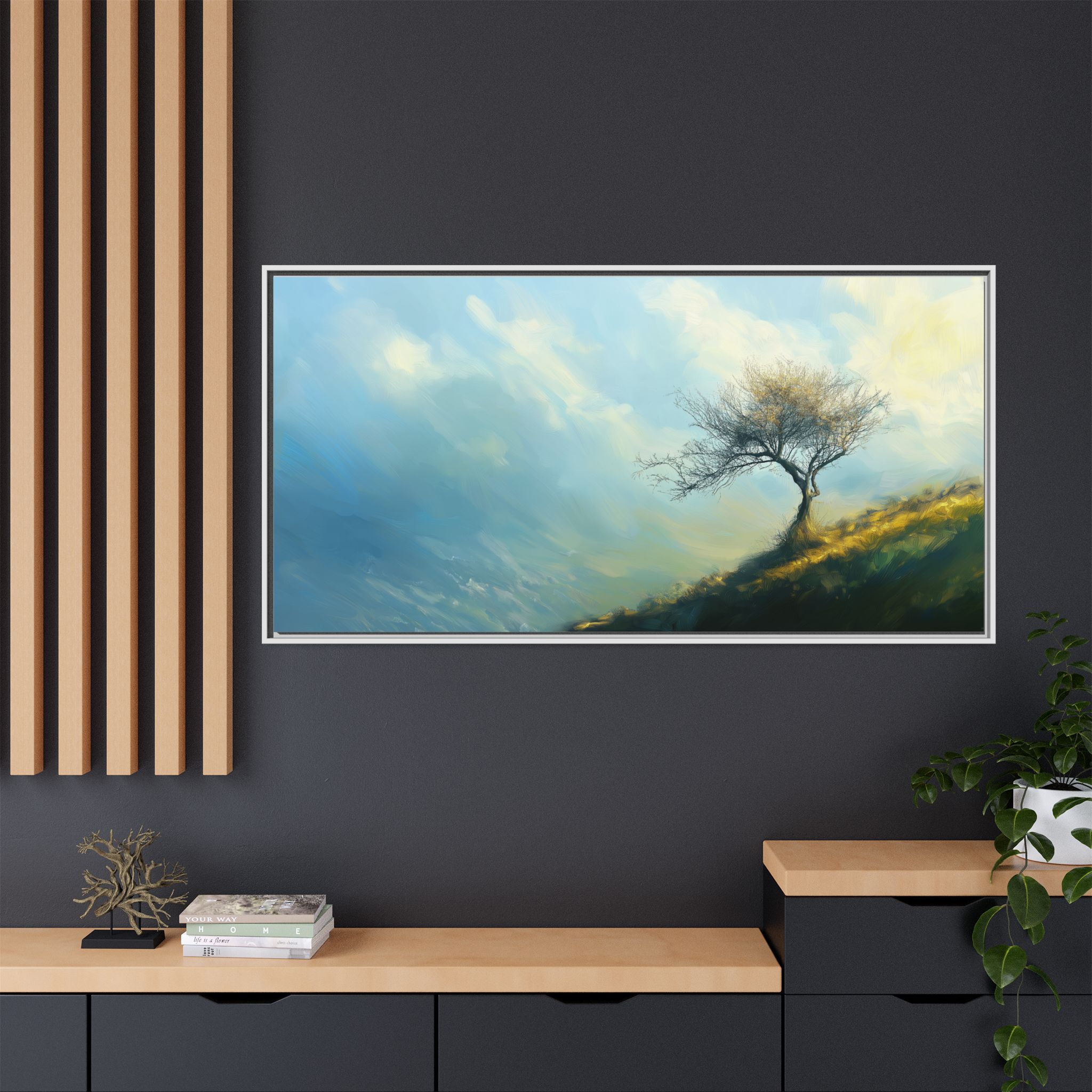 A stunning canvas print featuring a single tree in a storm, creating a dramatic and atmospheric vibe. Perfect for nature lovers and those who appreciate unique artwork. Ideal for home decor, especially for those looking to add a touch of nature to their living space. Suitable for Earth Day, Arbor Day, nature enthusiasts, and anyone who loves artistic home decor.