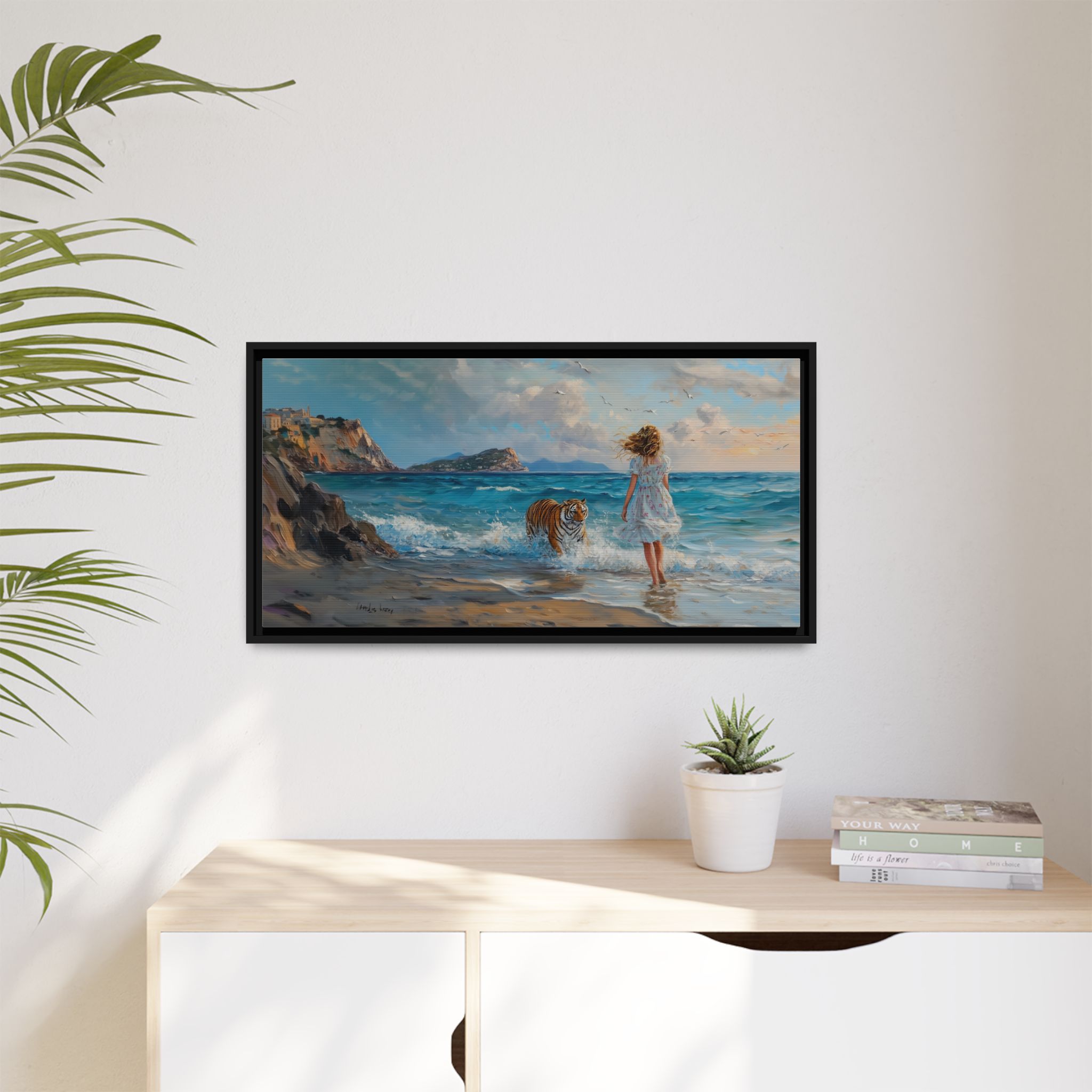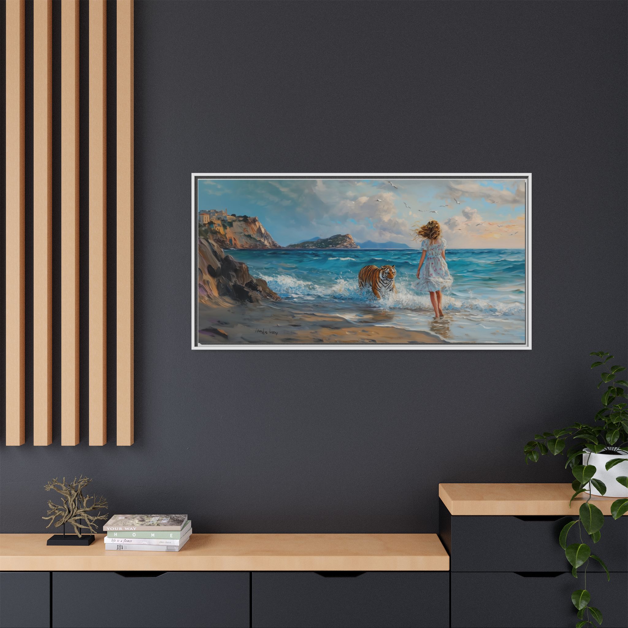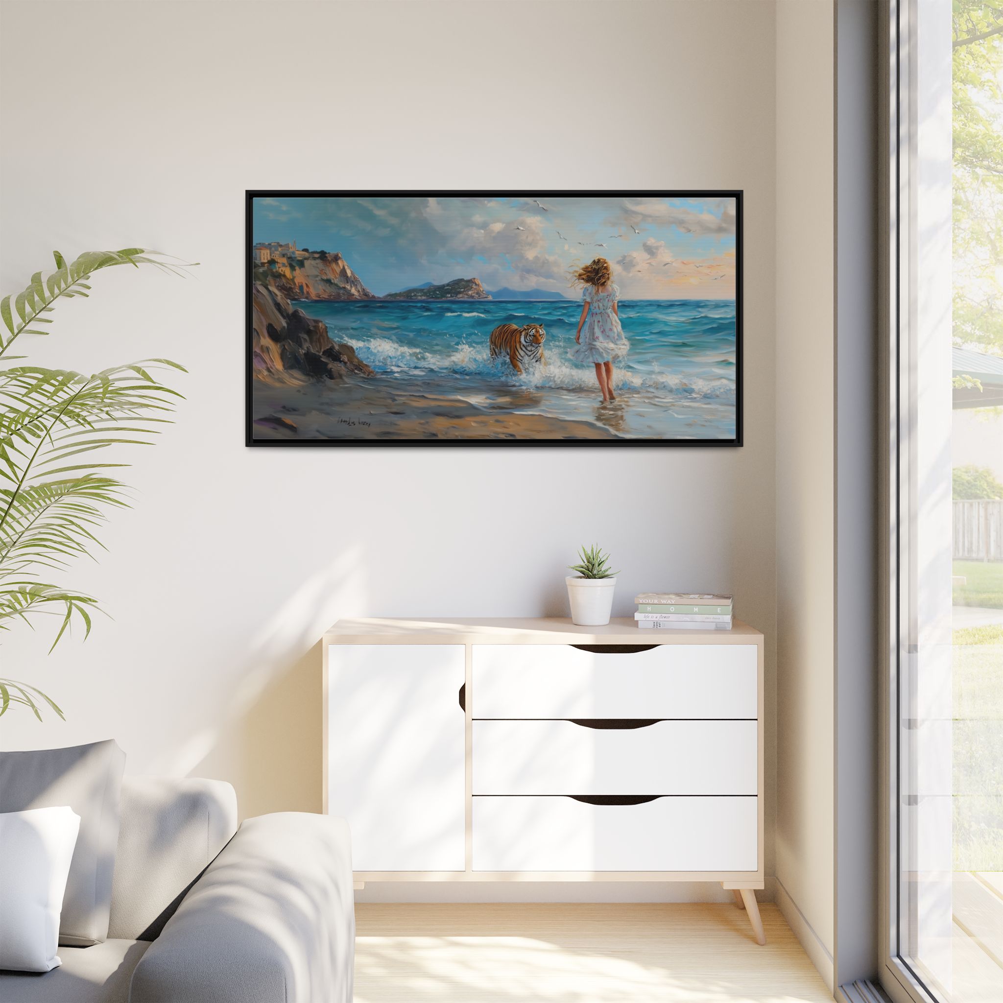 Bring a touch of the wild to your home with this stunning Tiger at a beach canvas print. The vibrant colors and unique coating make the image pop, giving your space a bold and adventurous vibe. Perfect for animal lovers and nature enthusiasts, this canvas print is ideal for decorating living rooms, bedrooms, or offices. Whether for birthdays, housewarmings, or just because, this canvas print is a unique and thoughtful gift.