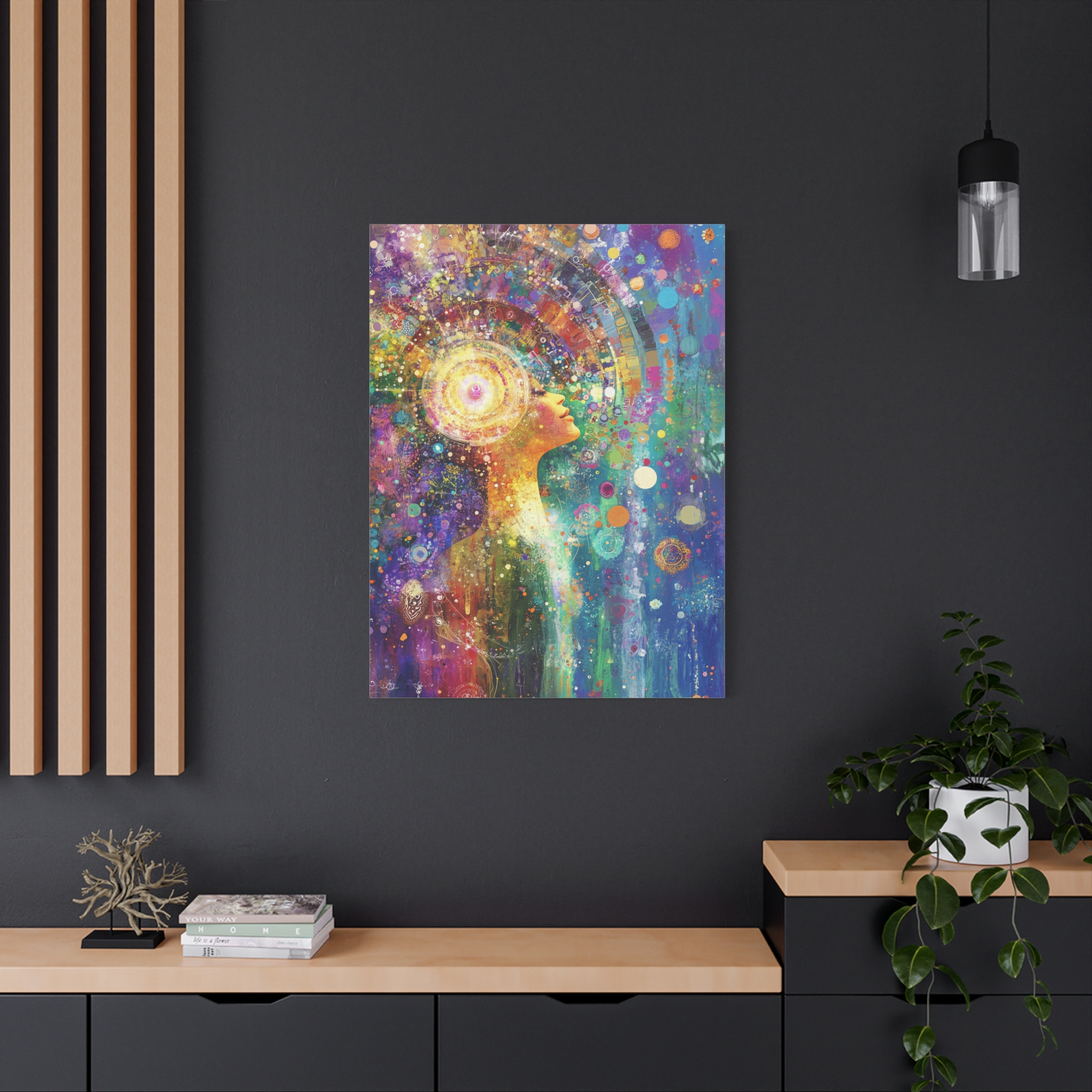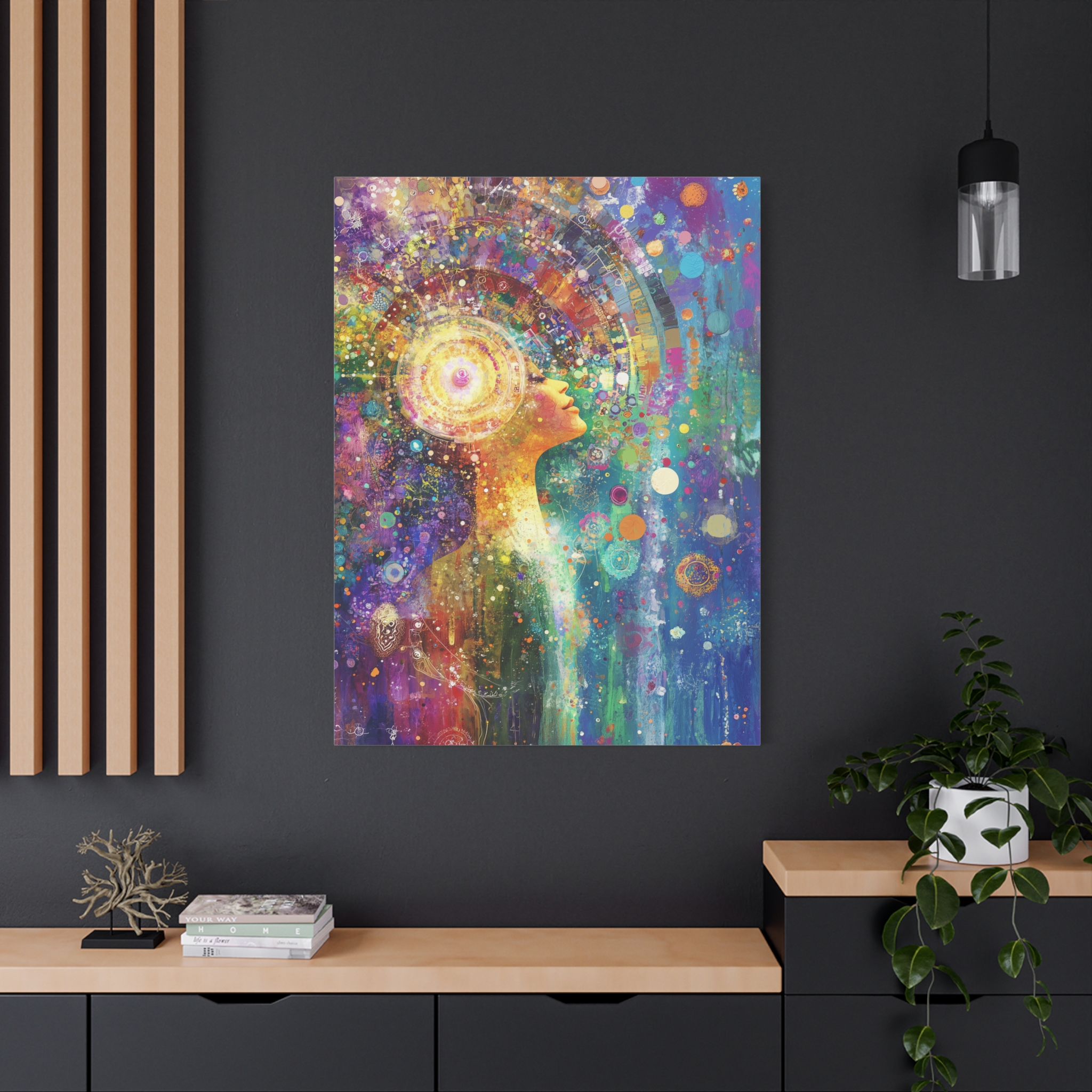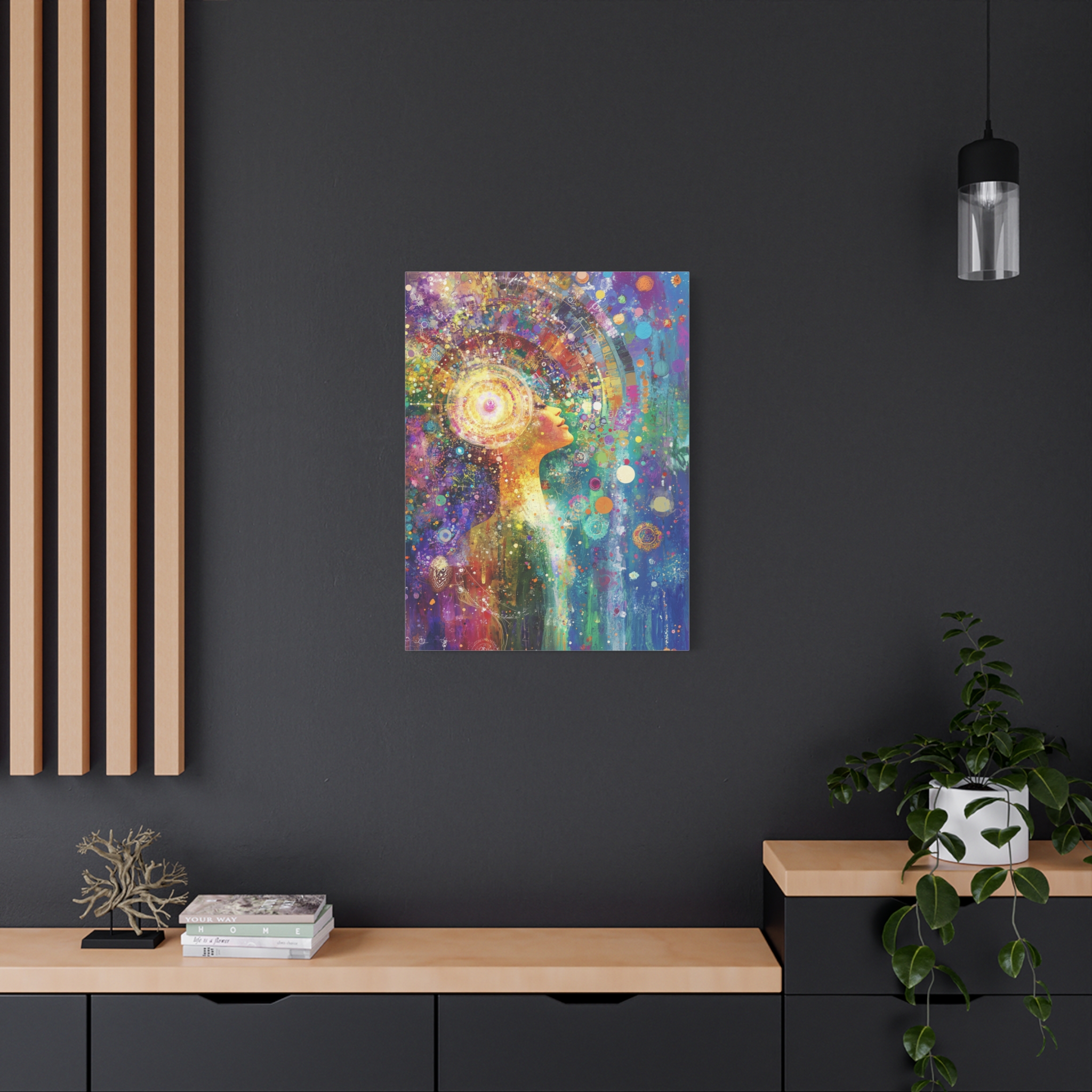 This transcendental meditation canvas print exudes a calm and peaceful vibe, making it perfect for creating a serene atmosphere in any living space. Ideal for those who appreciate mindfulness and relaxation. Perfect for gifting on occasions like birthdays, housewarmings, and holidays.