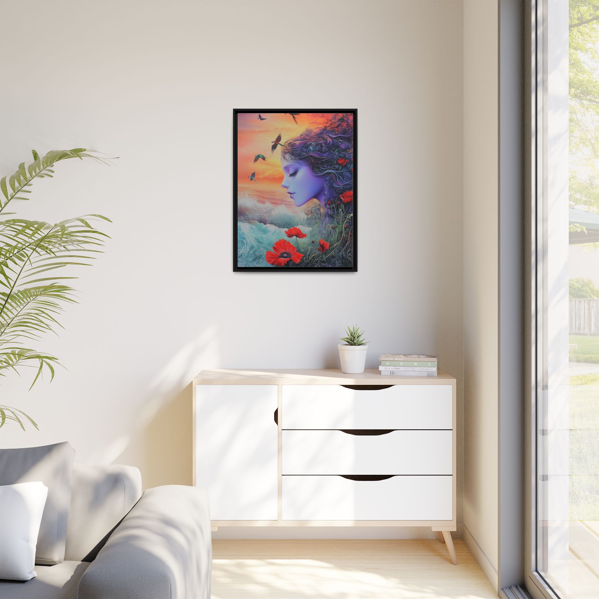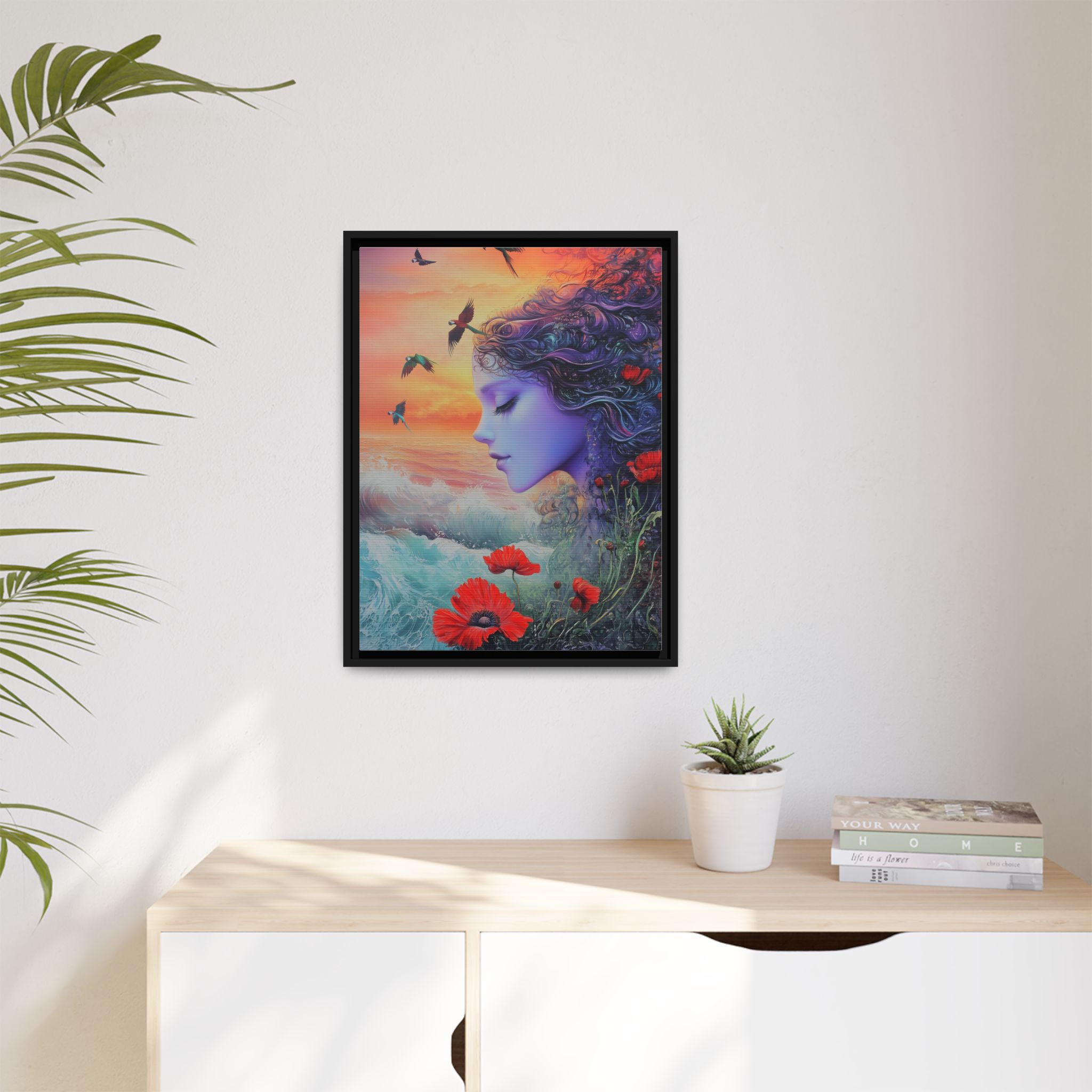 Waking Dream Canvas Print on matte canvas, framed in multi-color. This unique piece adds a touch of dreamy atmosphere to any space, perfect for those looking for a calm and whimsical vibe in their home decor. Ideal for dreamers and creative souls, suitable for gifting on birthdays, anniversaries, and housewarming parties.