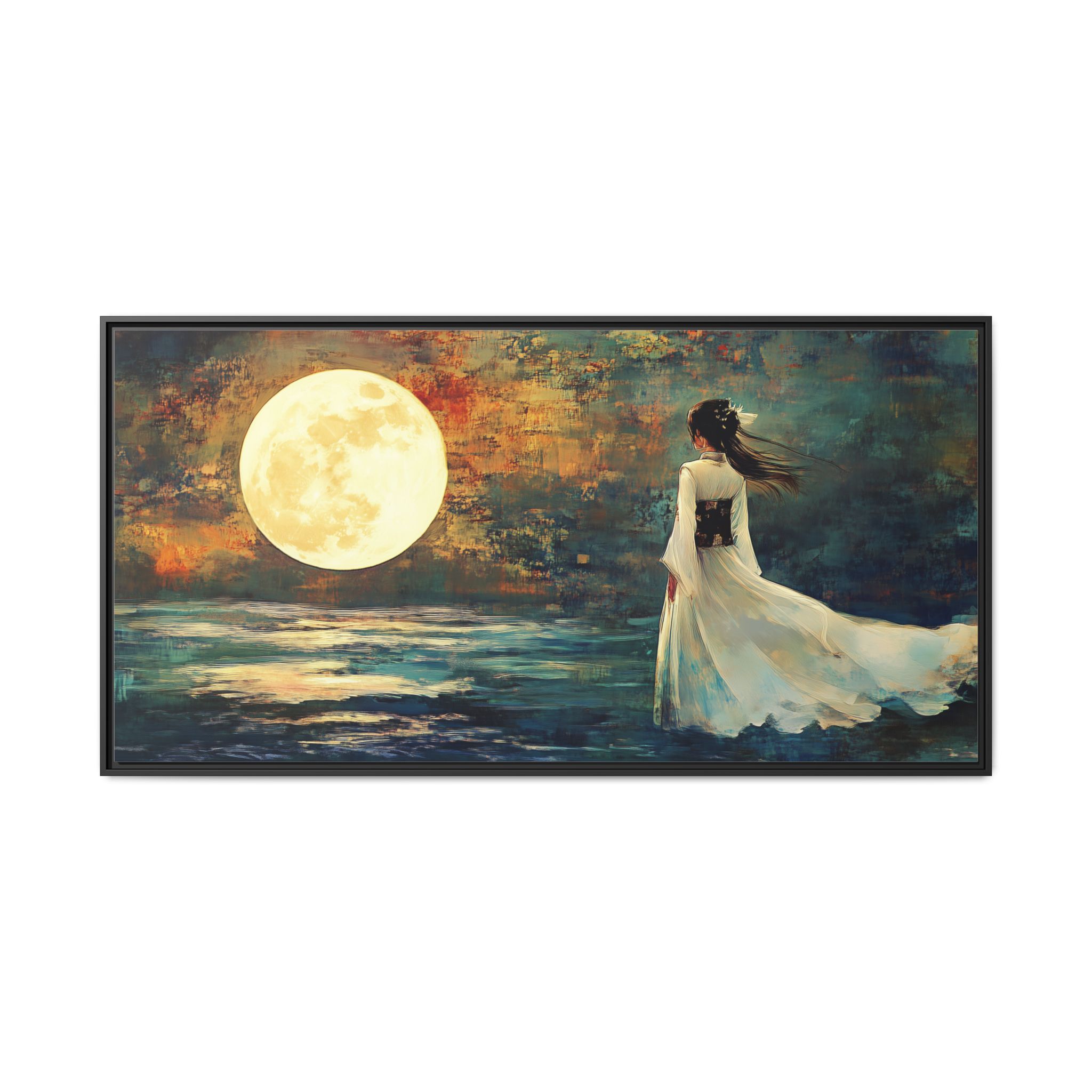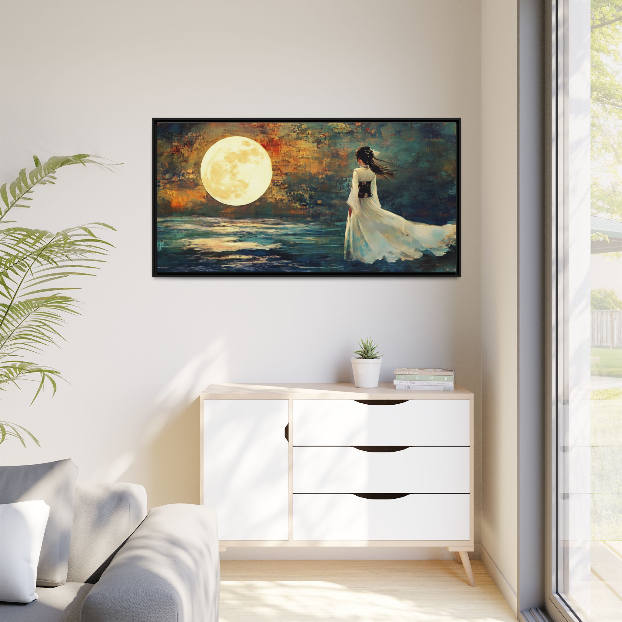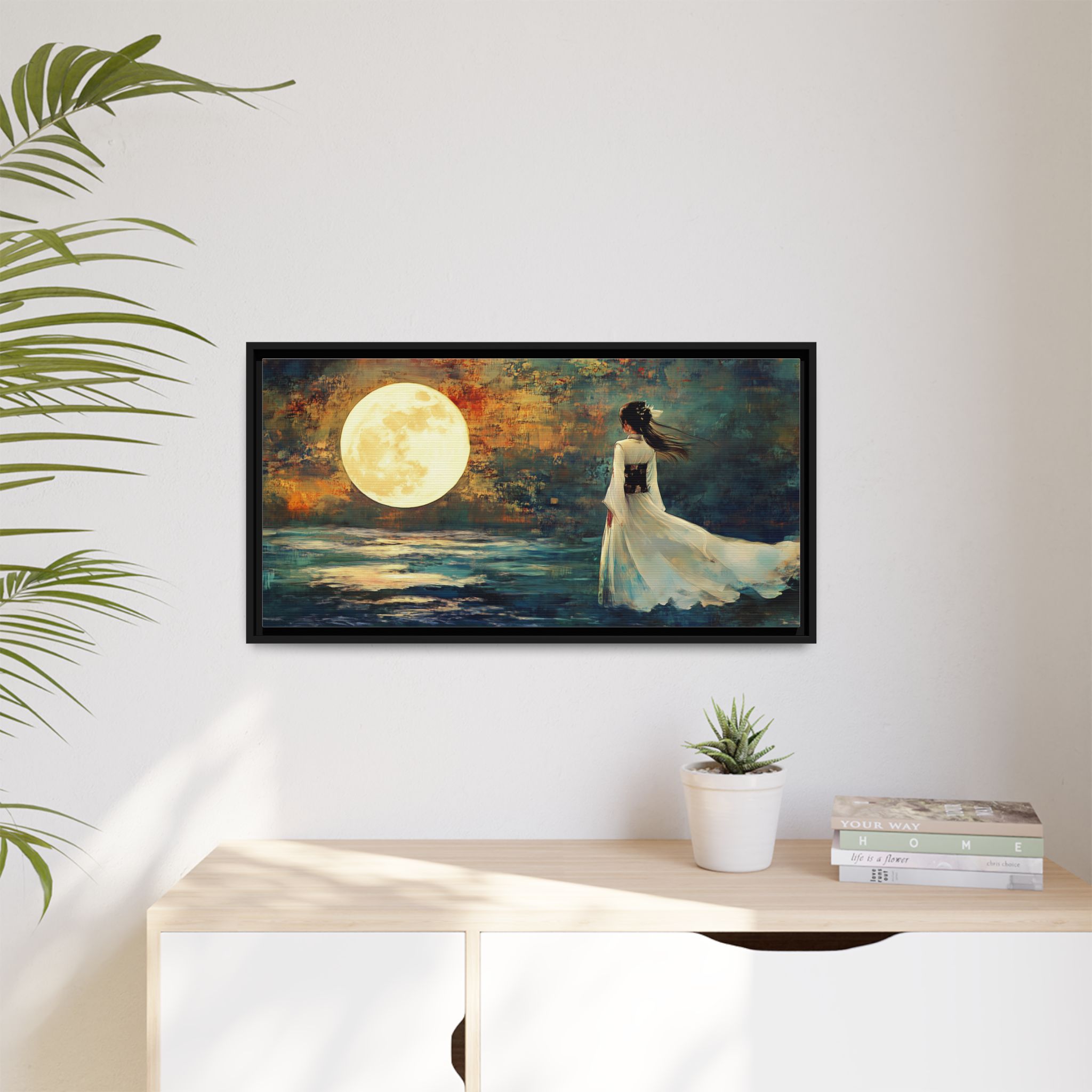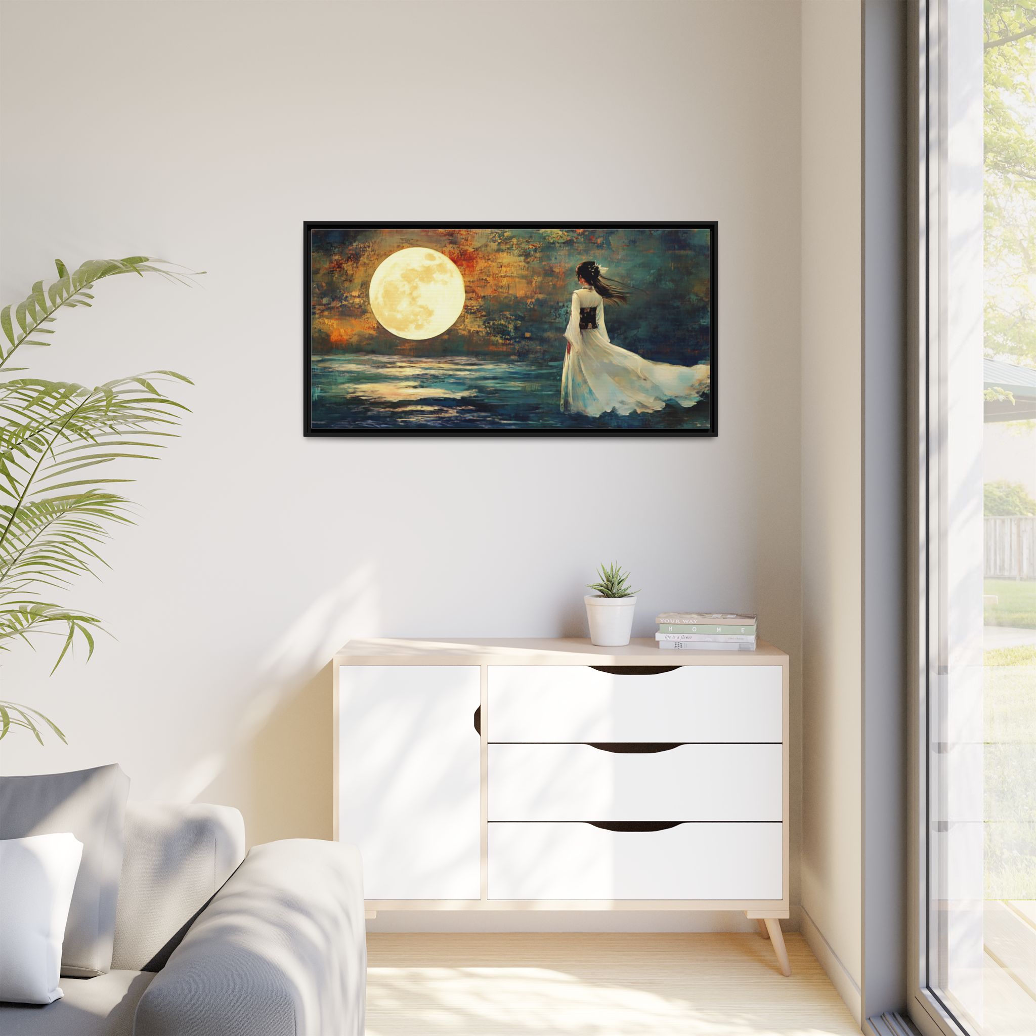 A stunning canvas print featuring a woman gazing at the moon, creating a mystical and dreamy atmosphere. Perfect for those who love celestial themes, astrology, and nature-inspired decor. Ideal for adding a touch of magic to any living space. Great for gifting on birthdays, anniversaries, or as a housewarming present.